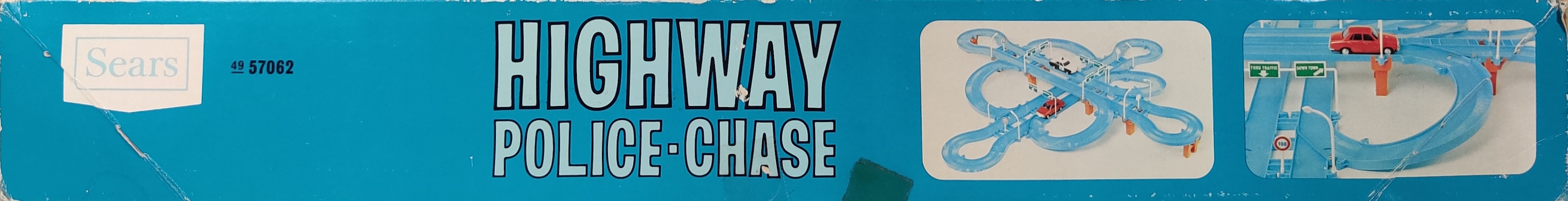 In the 1970s the Sears company distributed two Highway Police Chase sets based on Tomy's Plahighway (プラハイウェイ) series of road and cars in the United States and Canada. Both sets feature a four-way cloverleaf-style interchange with a red car and a police cruiser speeding around the interchange trying to catch or evade one another. In Japan the Plahighway range featured a few different sets and other vehicles and accessories. The later smaller set was also sold in Canada by Sears as late as 1979 with a Spanish version sold by Geyper.