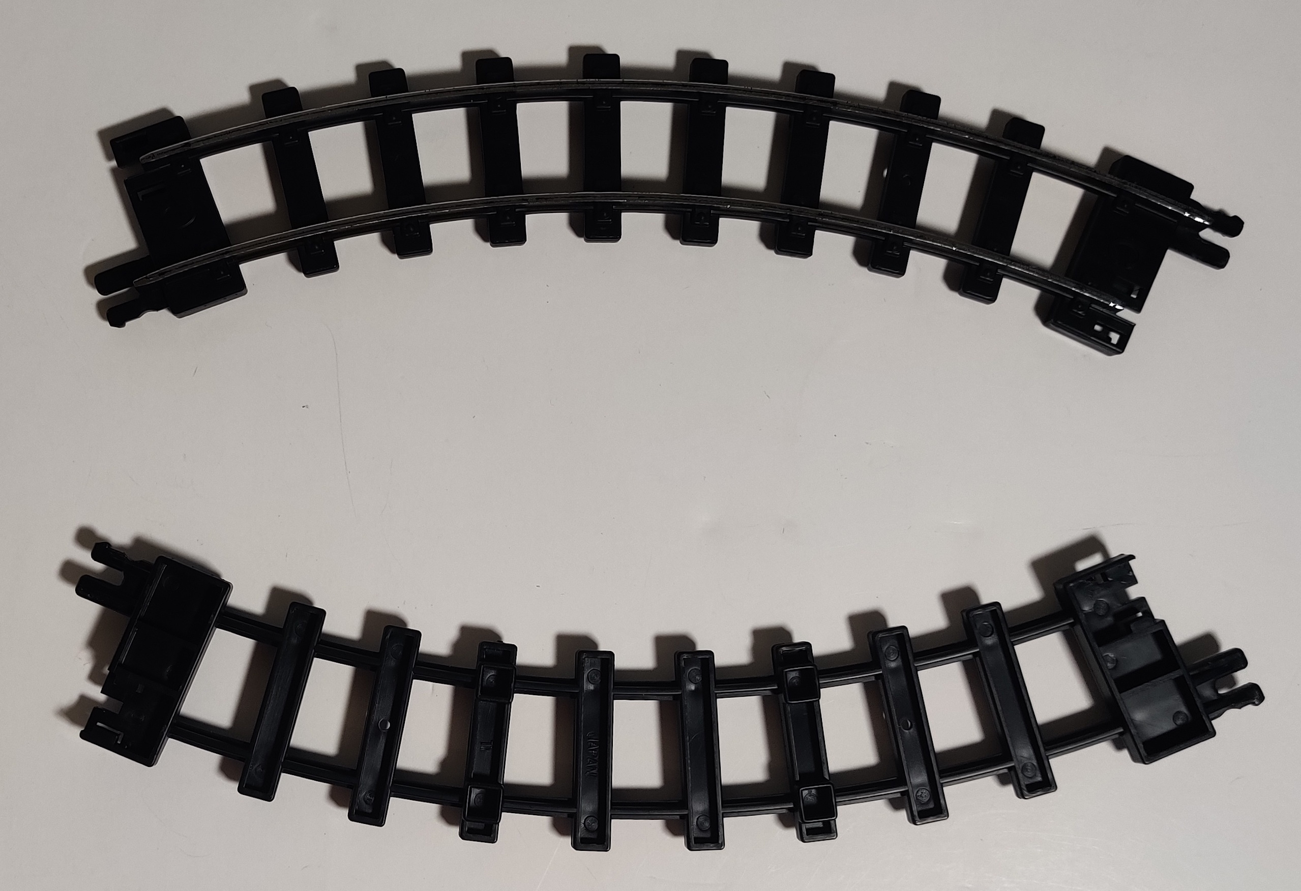 In later 1974 for the first DD-20 set and the last set of the original Super Rail era the smallest radius "C" curve was introduced. These were the "default" curve for Super Rail Black, and were part of Tomy's efforts to lower the cost of Super Rail.