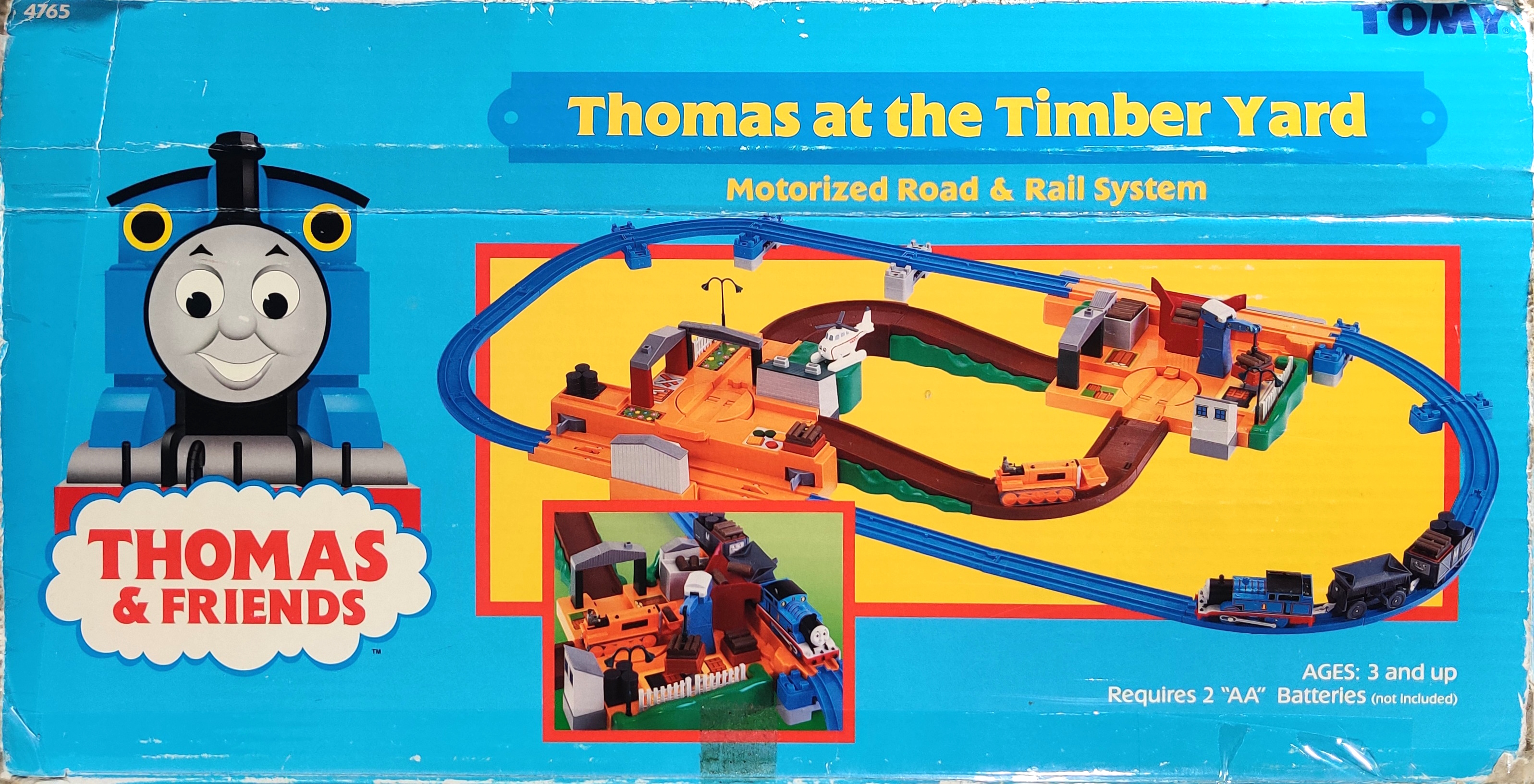 In 2003 the set was released in the United States as the 4765 Thomas at the Timber Yard Set as part of the Motorized Road & Rail System. This release features all the same aspects of the original Japanese release including the more decorated style of Thomas with sticker details, "M" troublesome truck, and nice compliment of accessories.