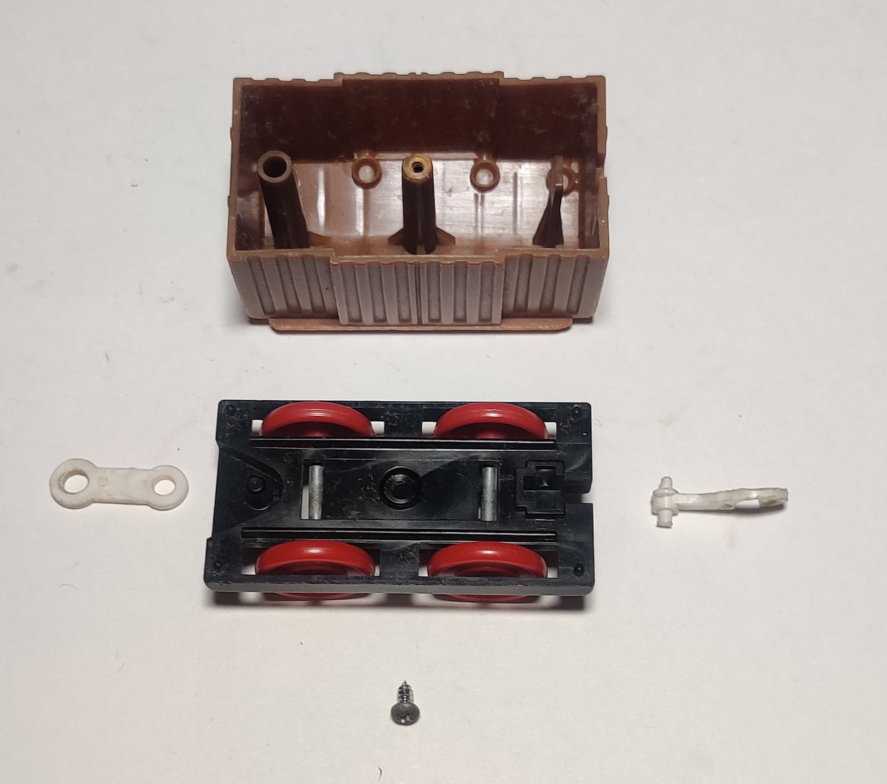 The construction of these cars is pretty much entirely unchanged throughout their run - they continued to use the clip-type axle holders and a single screw and other than the coupling changes and some minor tooling changes there is essentially no functional difference between any of these cars from different eras.