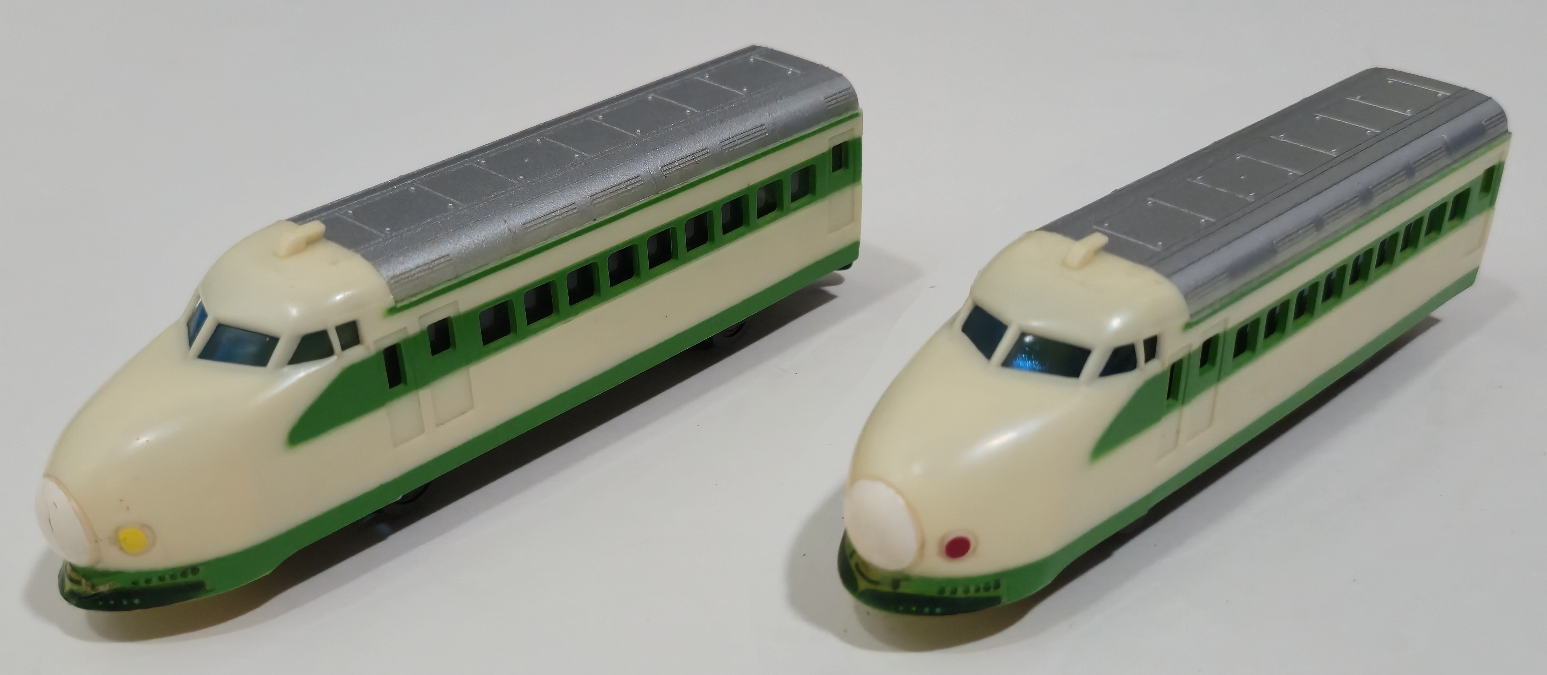 In 1981 ahead of the opening of the Tohoku Joetsu Shinkansen line the 200 series Shinkansen based on the 0 series Hikari was released. It uses the same tooling as the later Hikaris and is thus powered by the intermediate car. In addition to being green, of course, the snowplows are represented by stickers. It was sold in several sets including the Action Series Tohoku Joetsu Shinkansen Set.