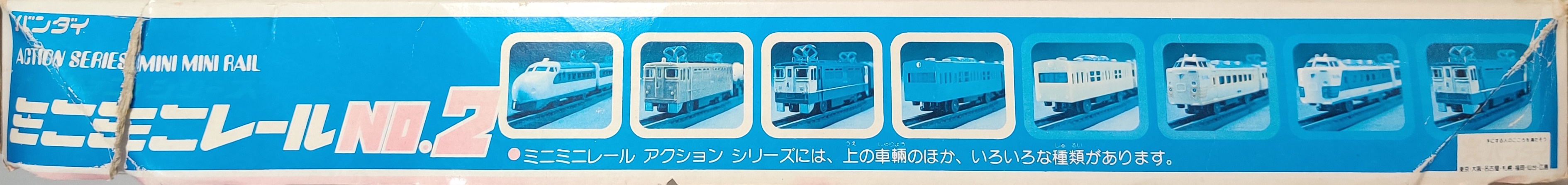The Mini Mini Rail No. 2 Blue Train Set (ミニミニレールNO.2ブルー・トレインセット) was released by Bandai as part of the Mini Mini Rail series as part of the more refined reversing-capable "Action Series". This version of the No. 2 set with reversing loop and double-track section with crossover point arrangement was also sold with other trains like the L Limited Express.
