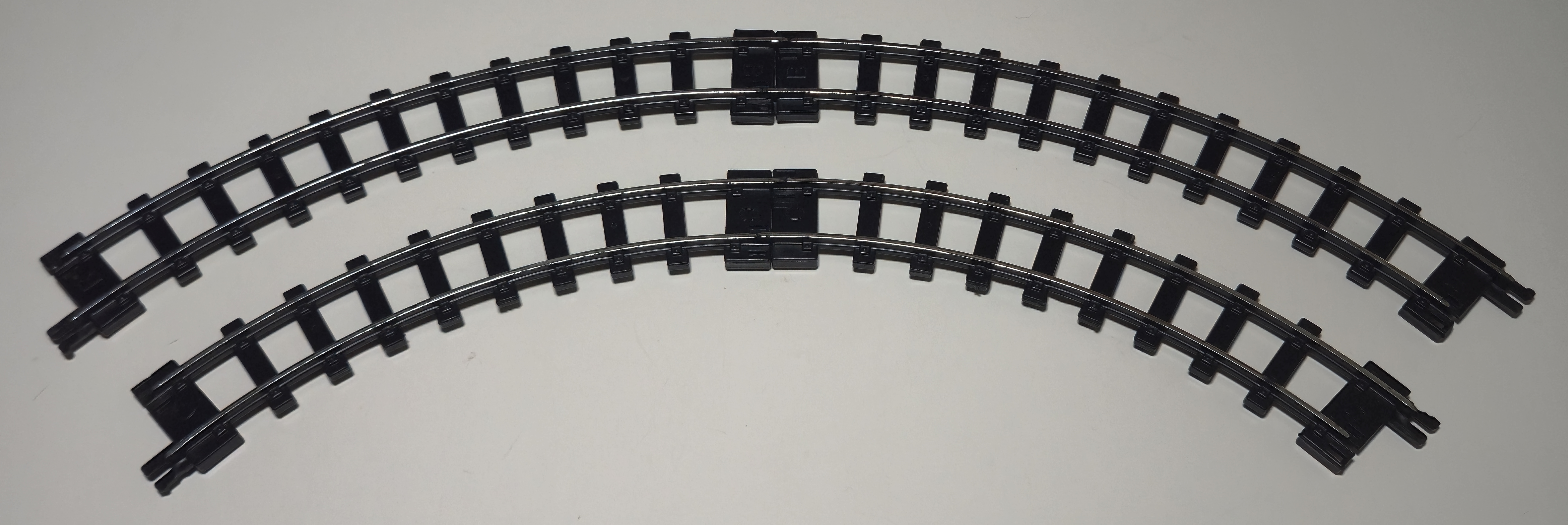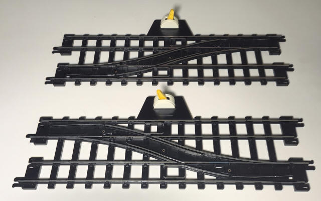 There is a very nice selection of track in this set, including the return of the old concentric loop layouts of the early 1970s sets with B and C curves. Both types of crossover point are included to facilitate lane switching.