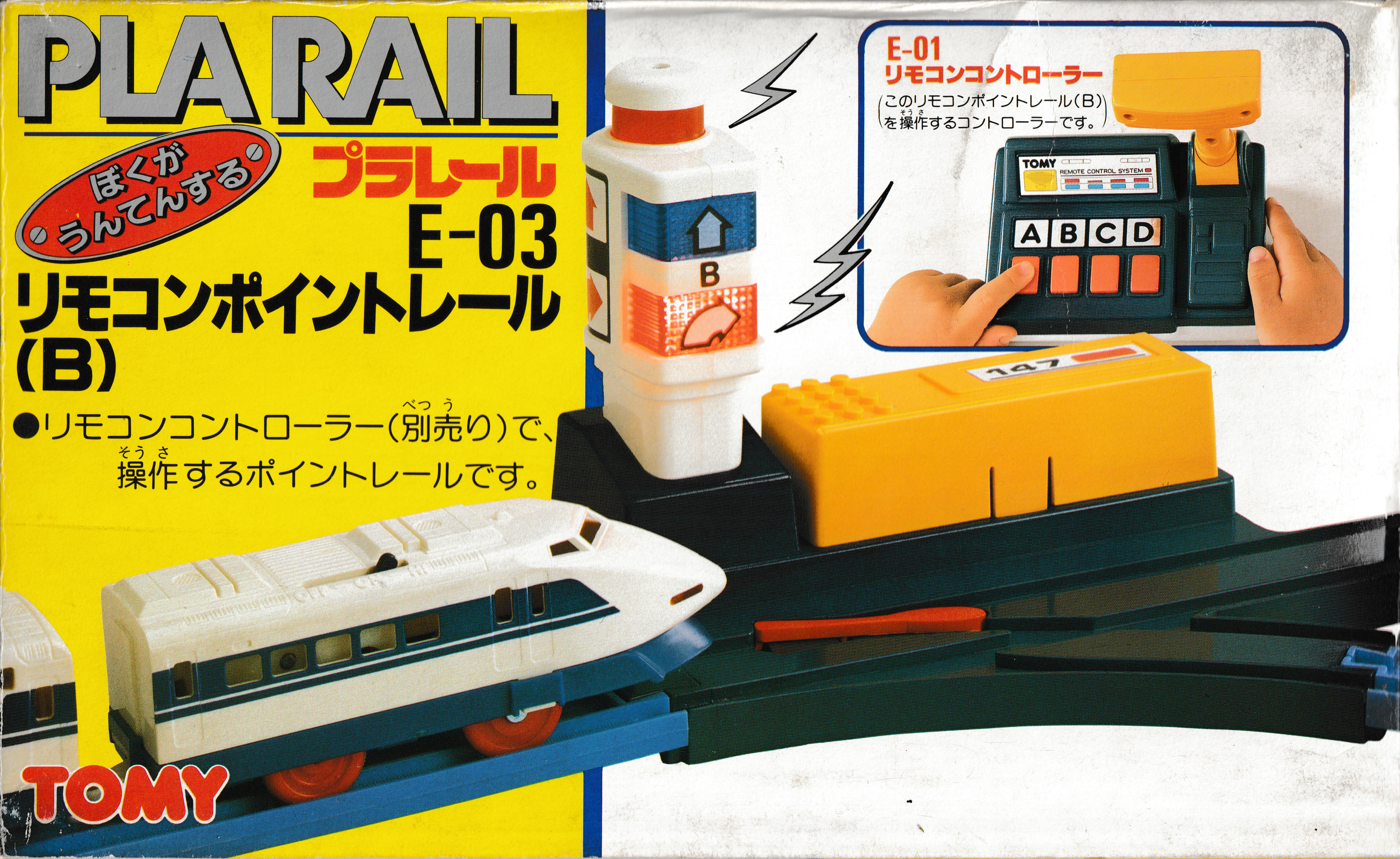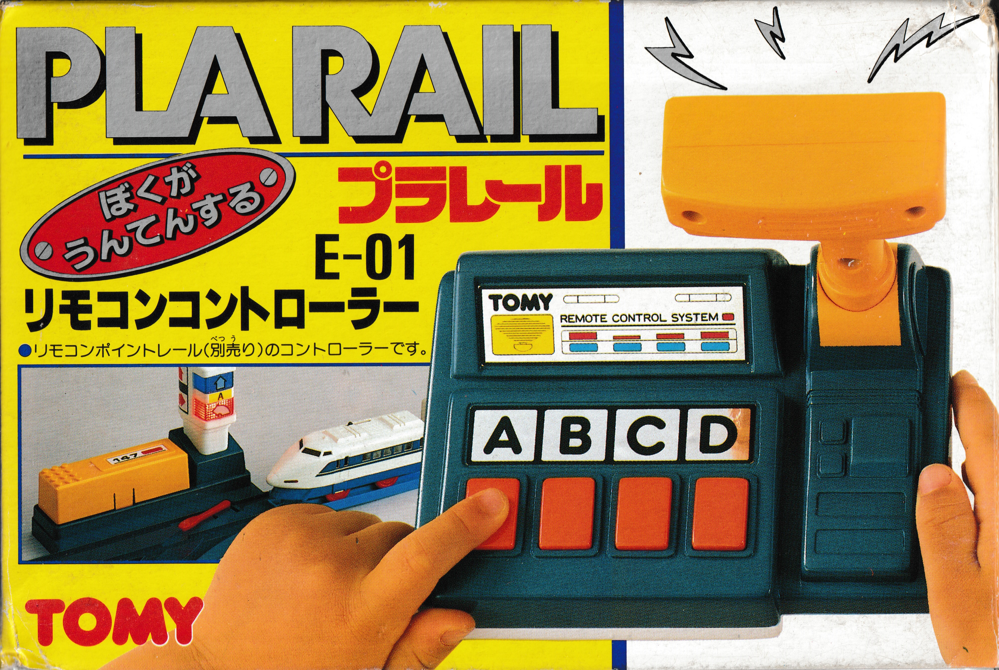 First included as components in the I'm Driving the Super Hikari Remote Control Points Set in 1989, the Remote Control System was released individually in 1990 and included a controller and two kinds of wireless remotely-operated points. Although designed to eventually handle four accessories in "A" to "D" channels, only "A" and "B" remote control switches were ever released. The remote and switches were seemingly only produced in Japan and remained on sale until around 1993.