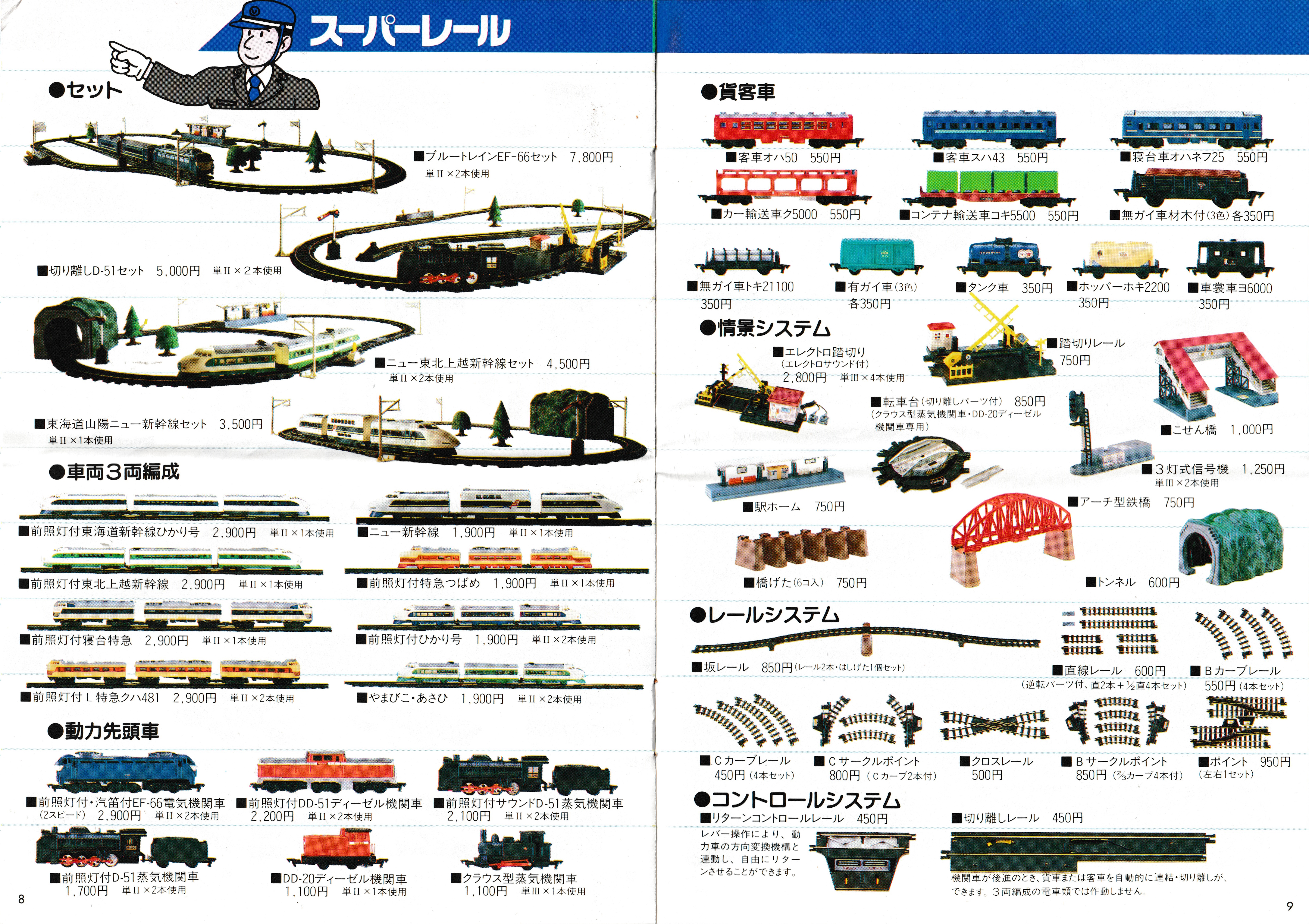 The Super Rail range of the later 1980s - the Japanese economic bubble gave the larger, more expensive Super Rail range more sets and a decent number of trains and accessories still in production.