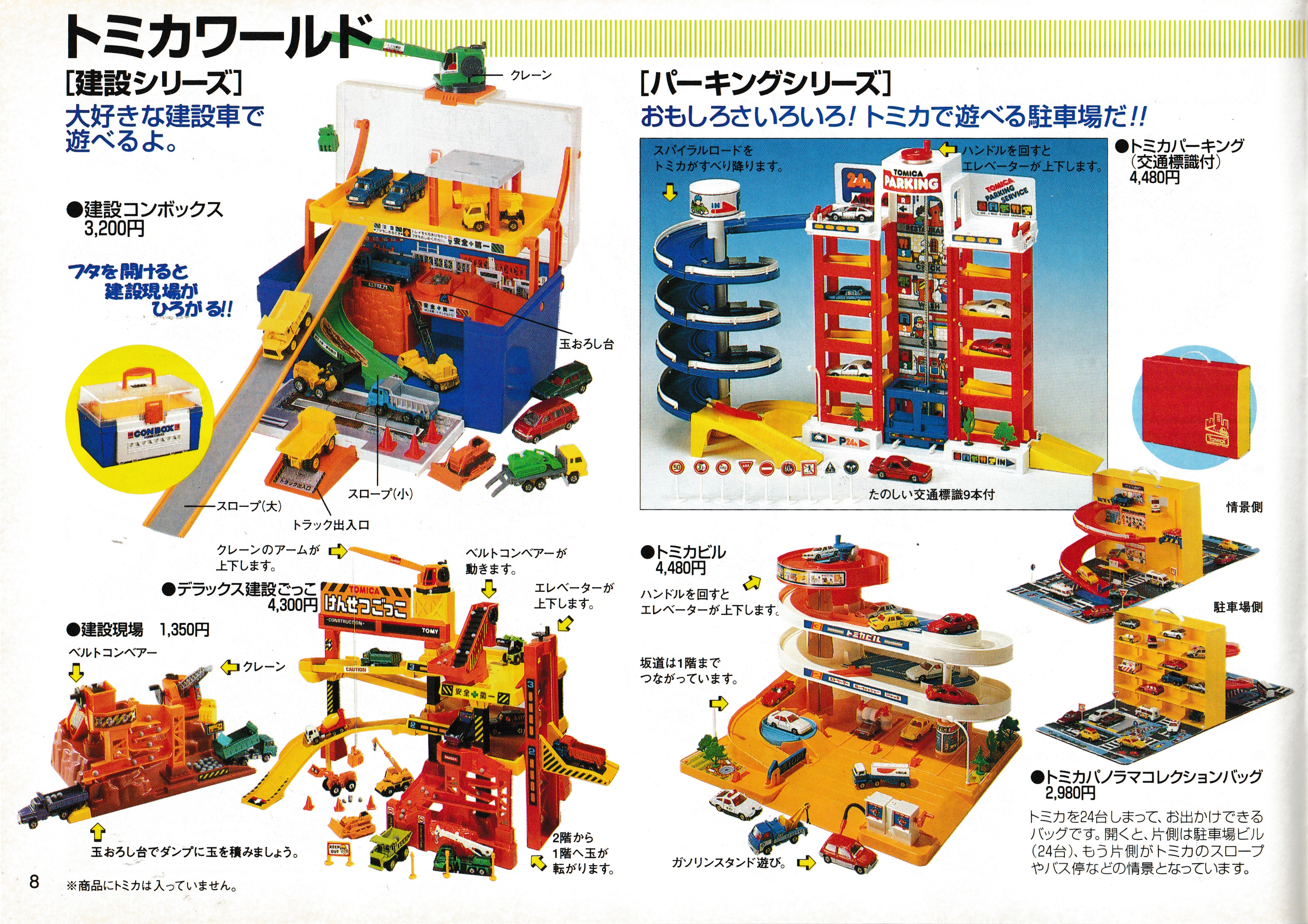 Tomica Town buildings and accessories as well as the B/O Tomica range, including the expensive trailer-hauling trucks with vehicle cargo. The range was reworked into Motor Tomica in 1997.