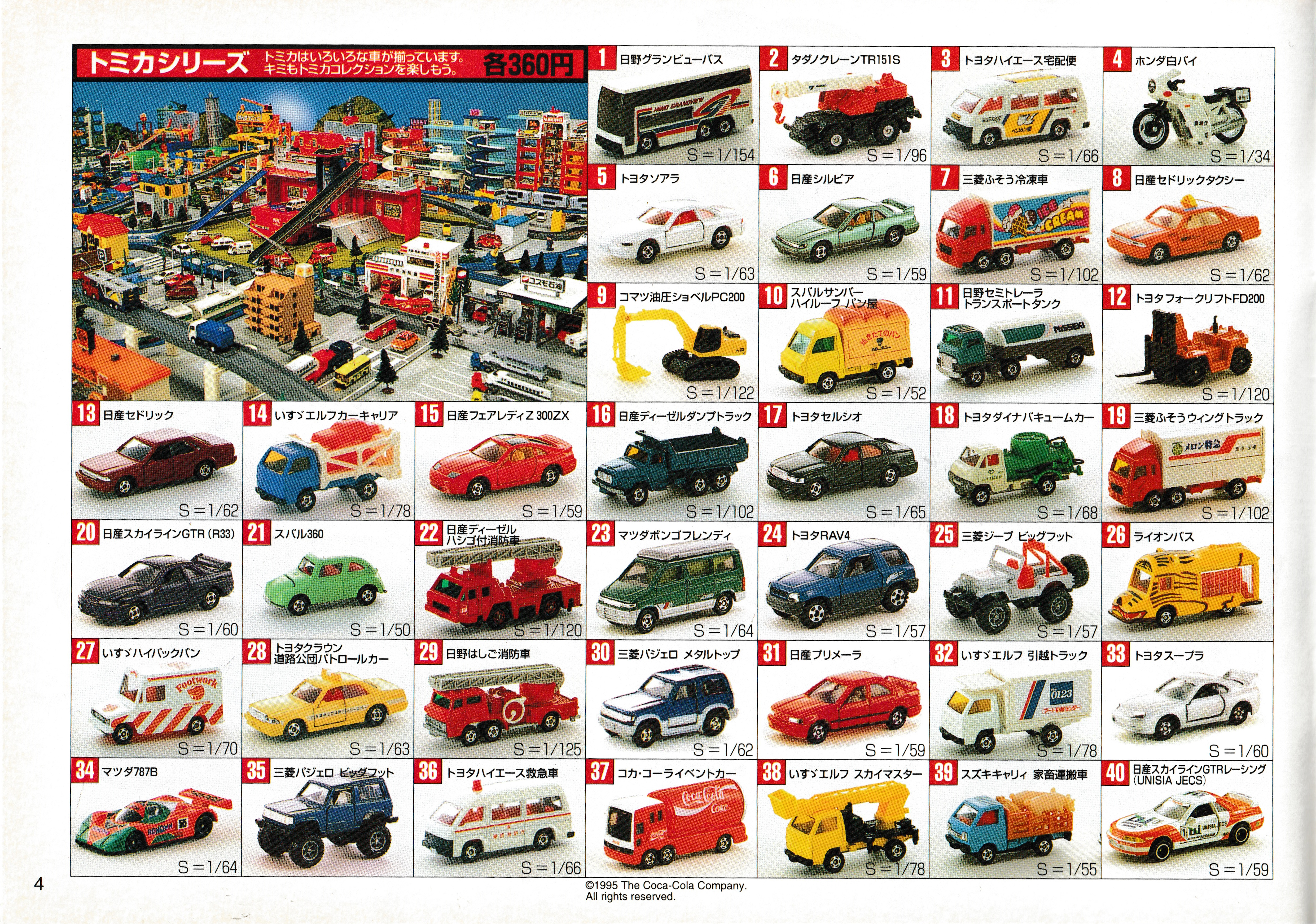 These "standard" Tomica are the size of other similar ~1:64 scale diecast cars and cost 360 yen each at the time.
