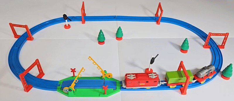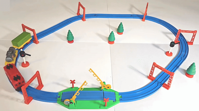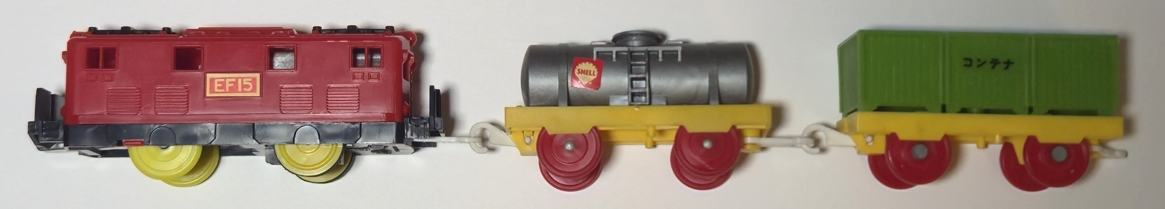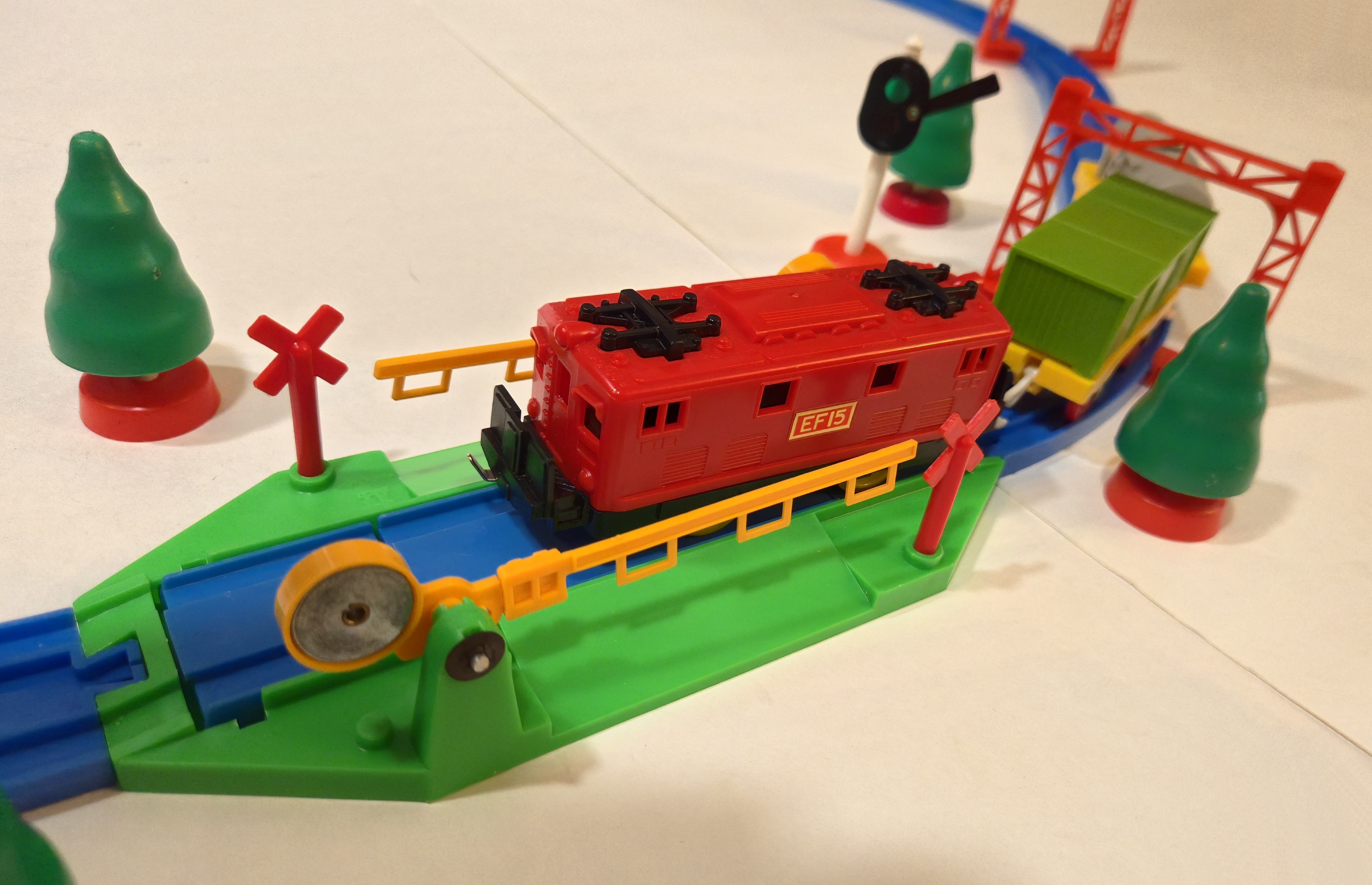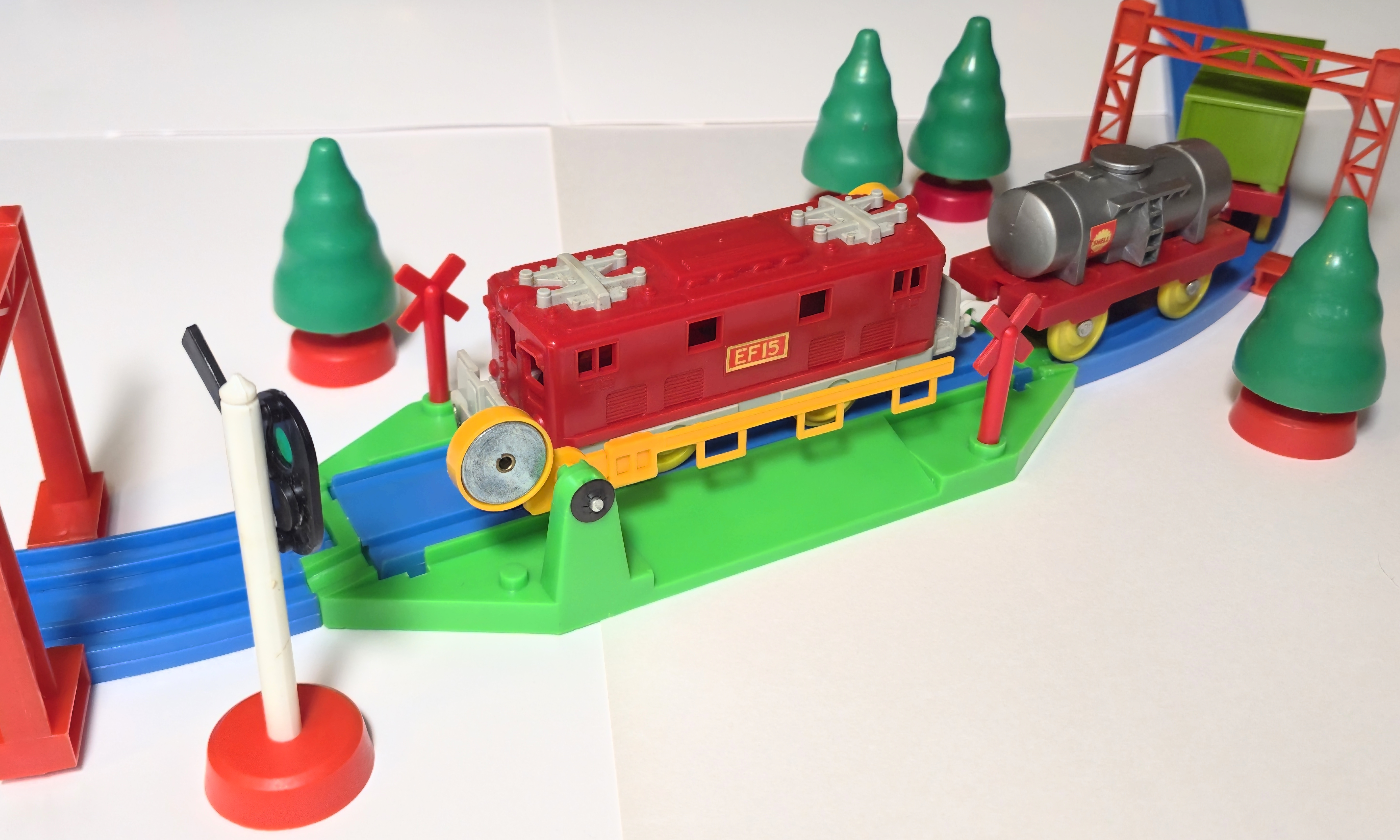 The 1970 Electric Locomotive Set (でんききかんしゃセット) included the then-new EF-15 Electric Locomotive, freight cars, and the first Plarail automatic Railway Crossing.