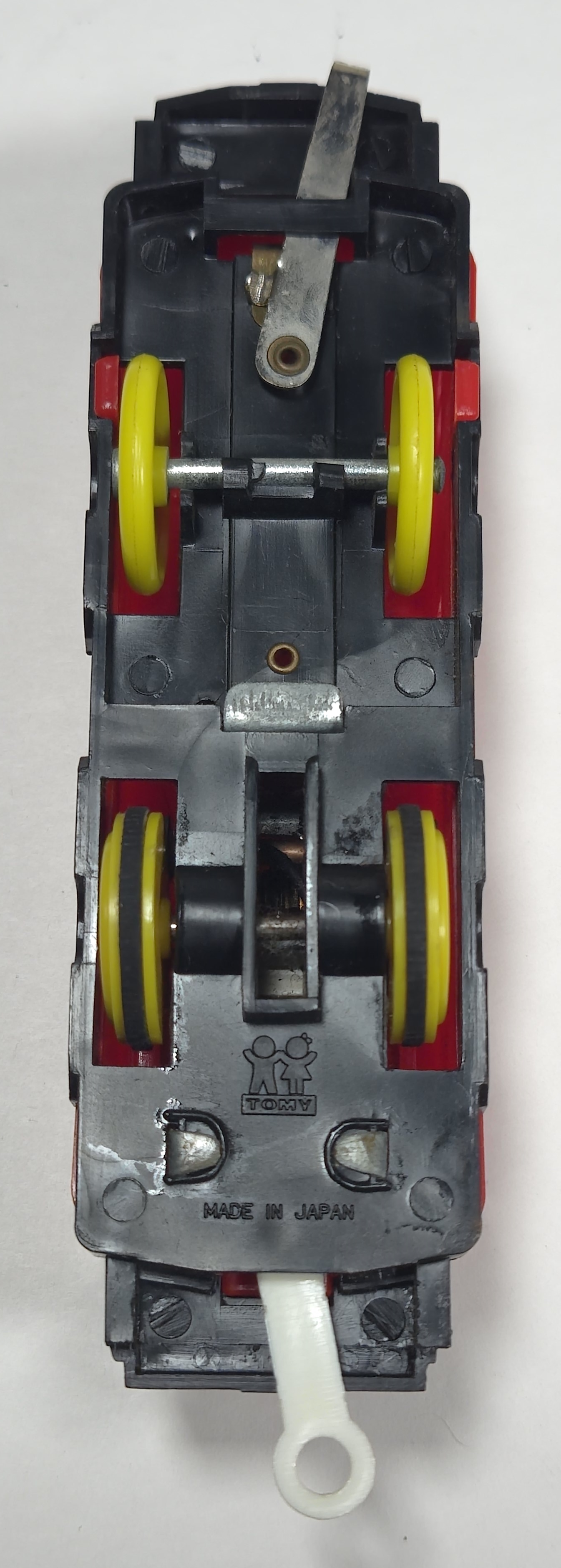 Certainly by the time of these black EF15s the ST marks would have been being added to the new boxes. The tooling was updated in a few ways - the original grey chassis does not have the Tomy logo below the rear wheels, and the rear window had a rounded cutout added to avoid the motor shaft - the window was made an even larger rectangle later on.