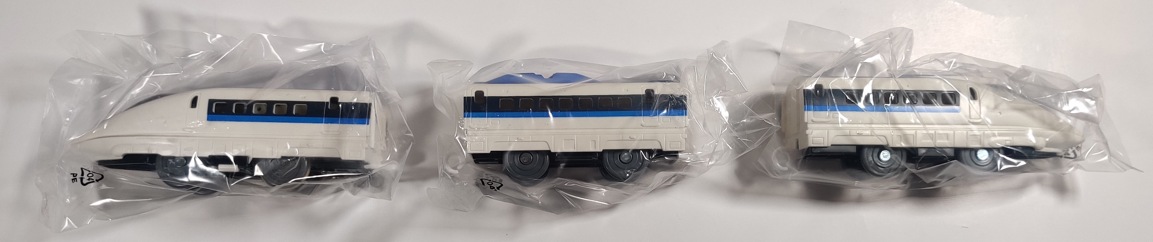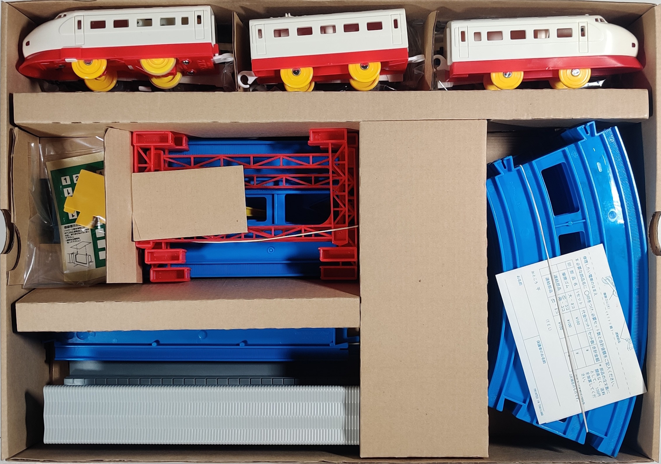 The 500 series intermediate and tail cars are constructed like other cars of the era. The train originally came in plastic bags and is stored under the 0 series train in the box.