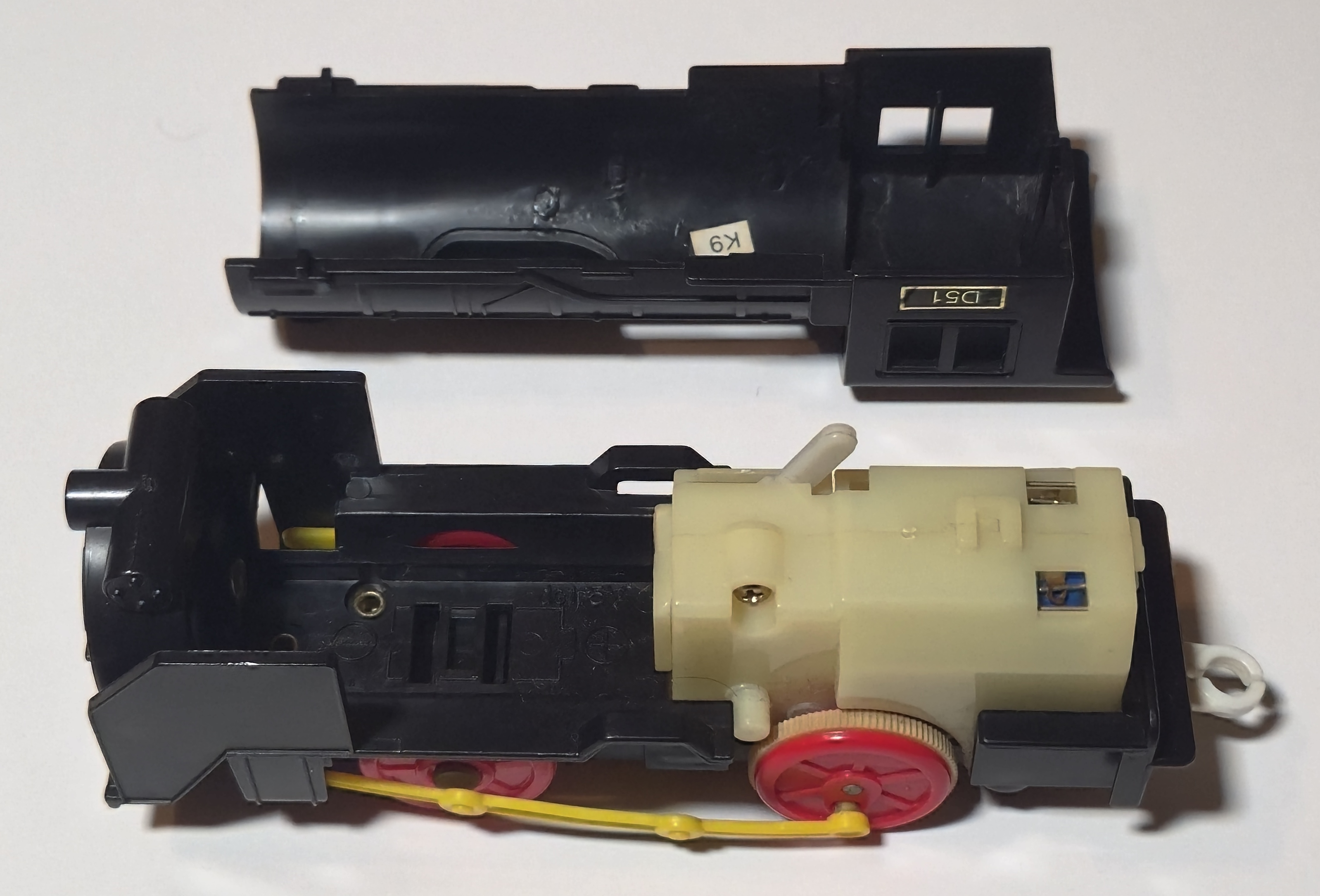 The D-51 chassis is the curvy logo type, and the container car is the type with a wide-brim screw holding the rear coupling in.