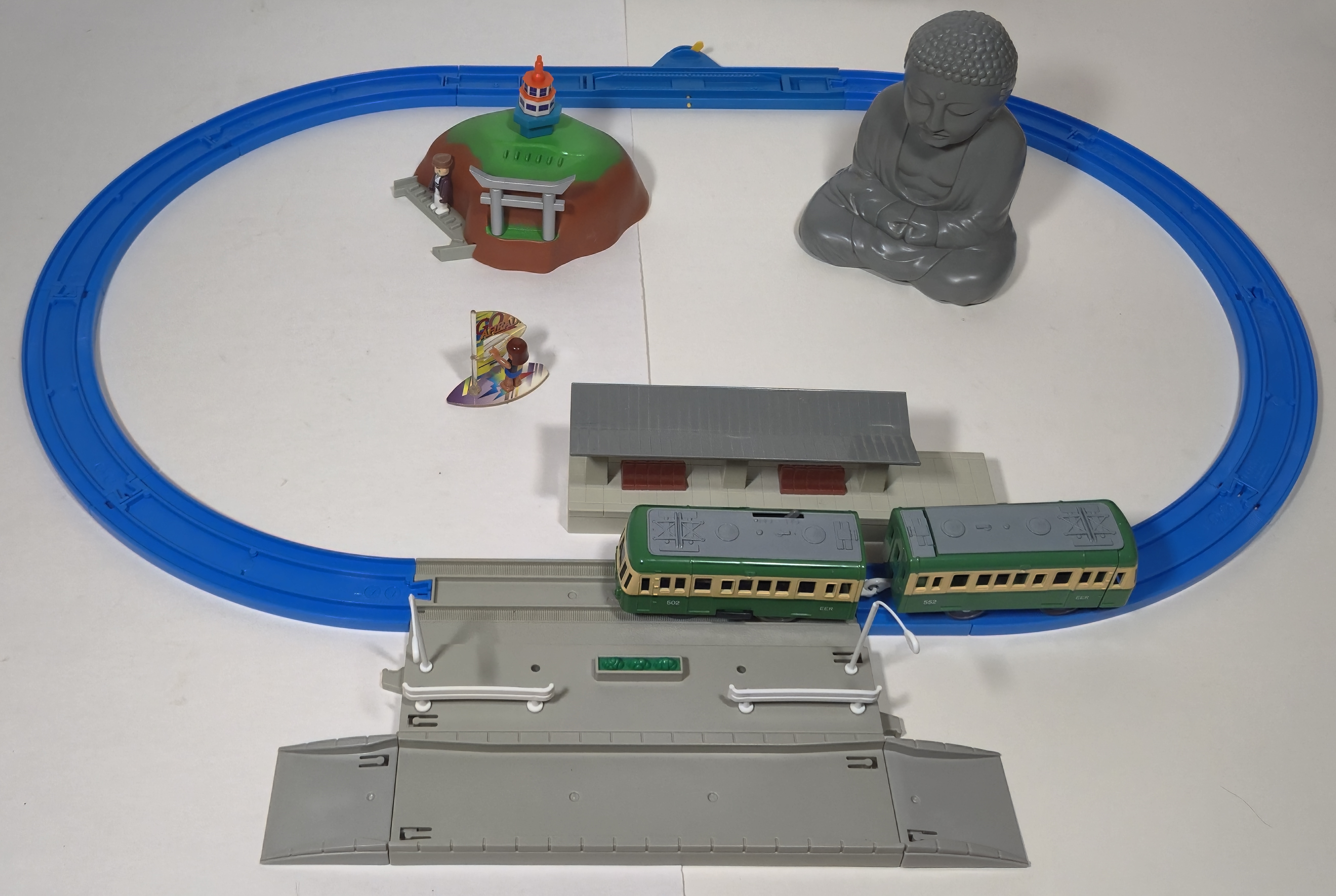 In 2010 there was another smaller set sold only at a few places related to the Enoden... it is a rather plain set, to be honest. This set with its many accessories and PlaKids train is very nice, and the Plaroad Enoden set is not bad either. Actually, I have two of a few of the accessories in this set, including the PlaKids.