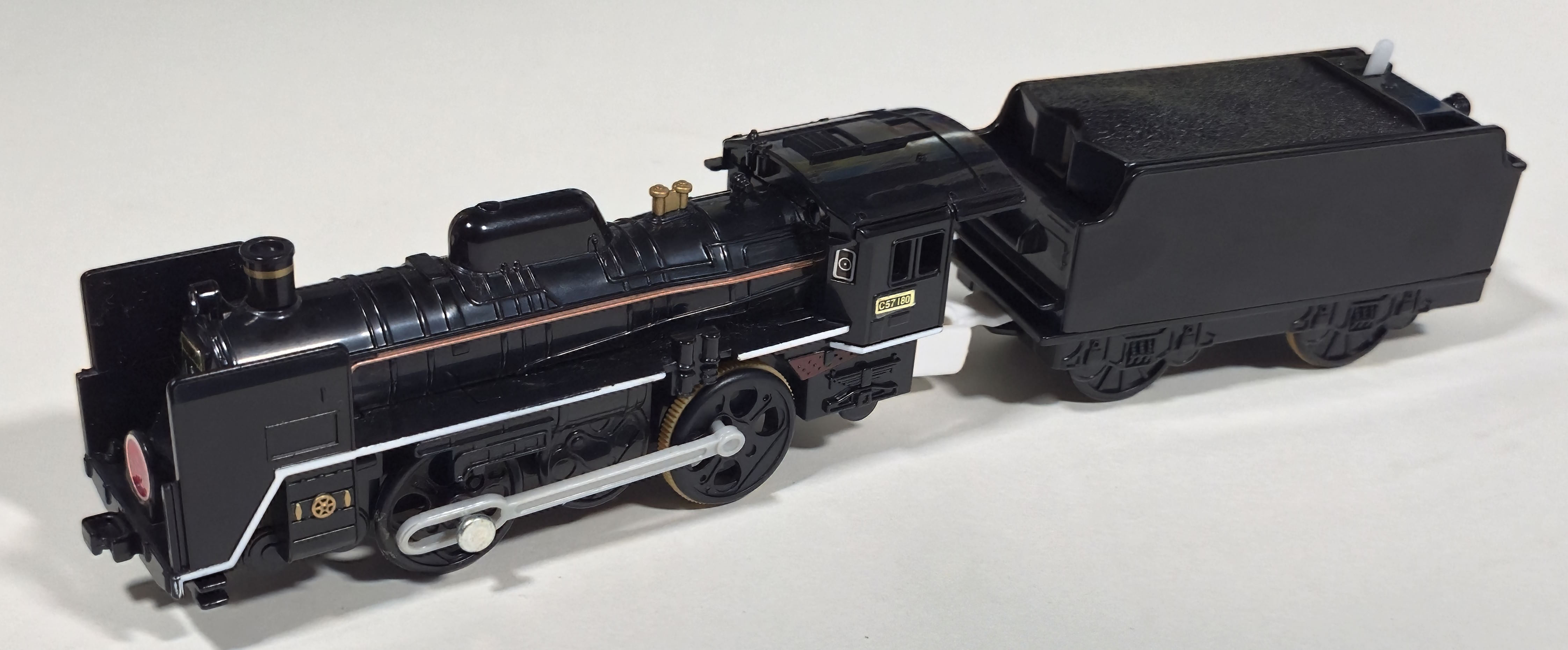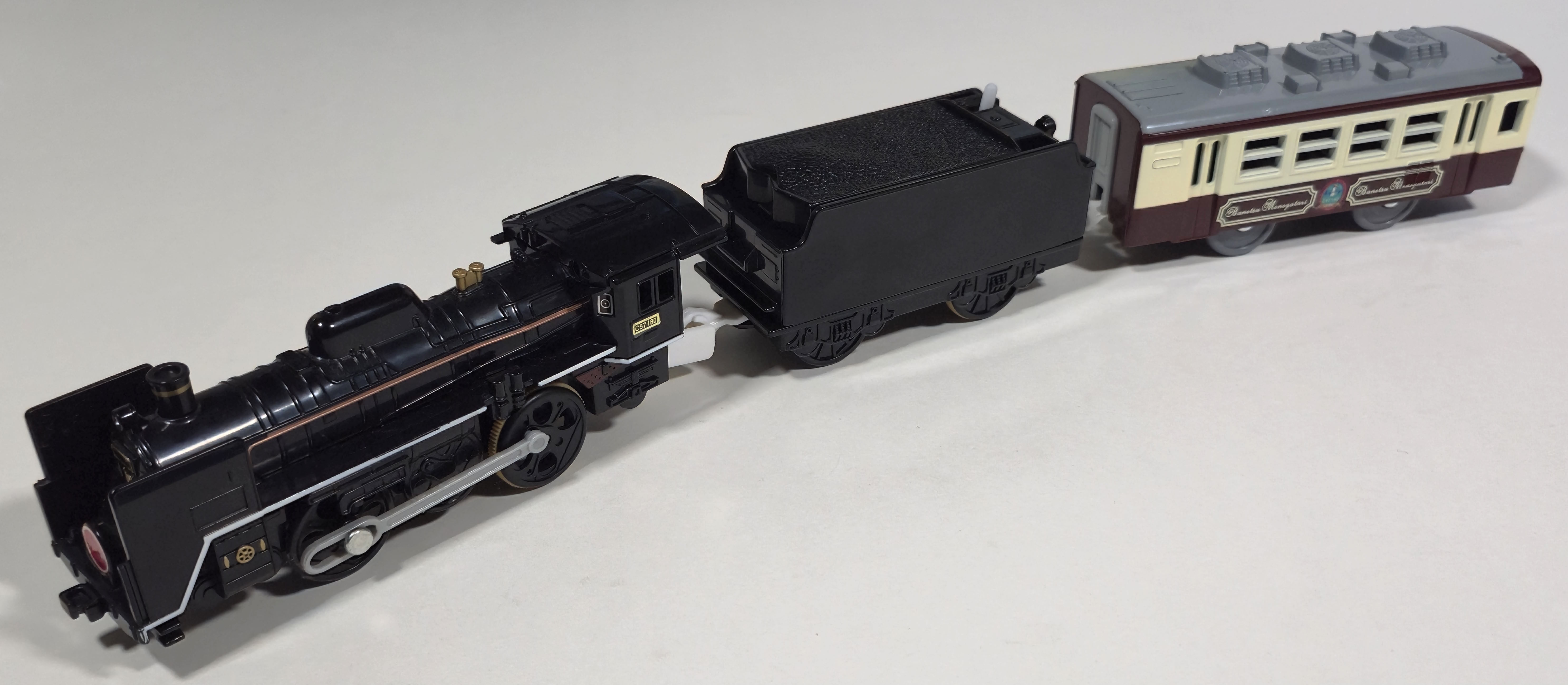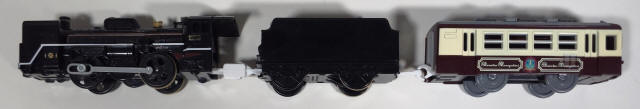 The C-57 first appeared in Plarail form in the S-53 C57 No. 1 Steam Locomotive Yamaguchi individual release in 2003, but this set was the first time that unit 180 was represented in Plarail form. Unit number 1 and 180 are the only two examples of the class preserved in working condition. The train is tender drive, of course, as the PlaKid takes up the space where a gearbox would traditionally be. It does make the tender look a little large and bulky.