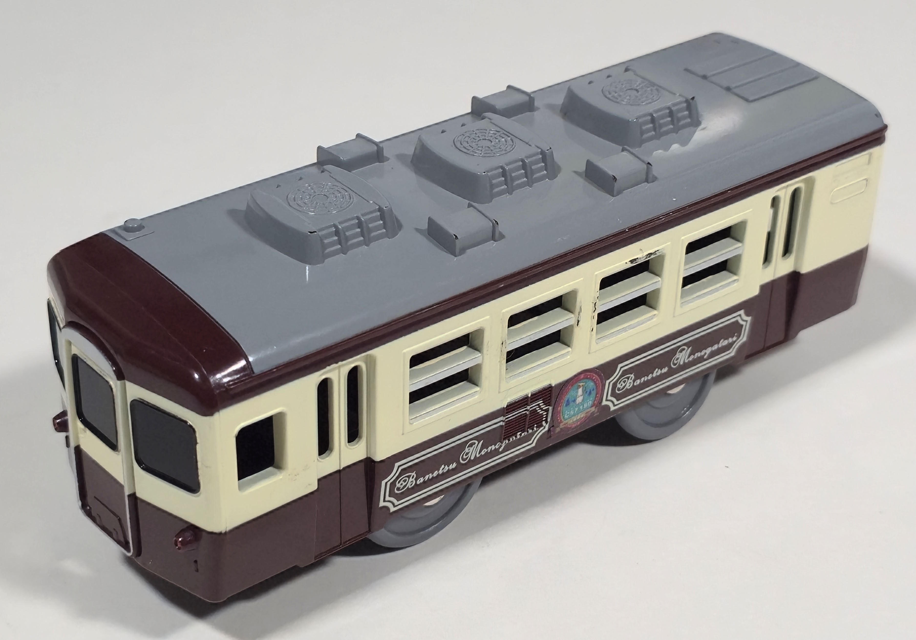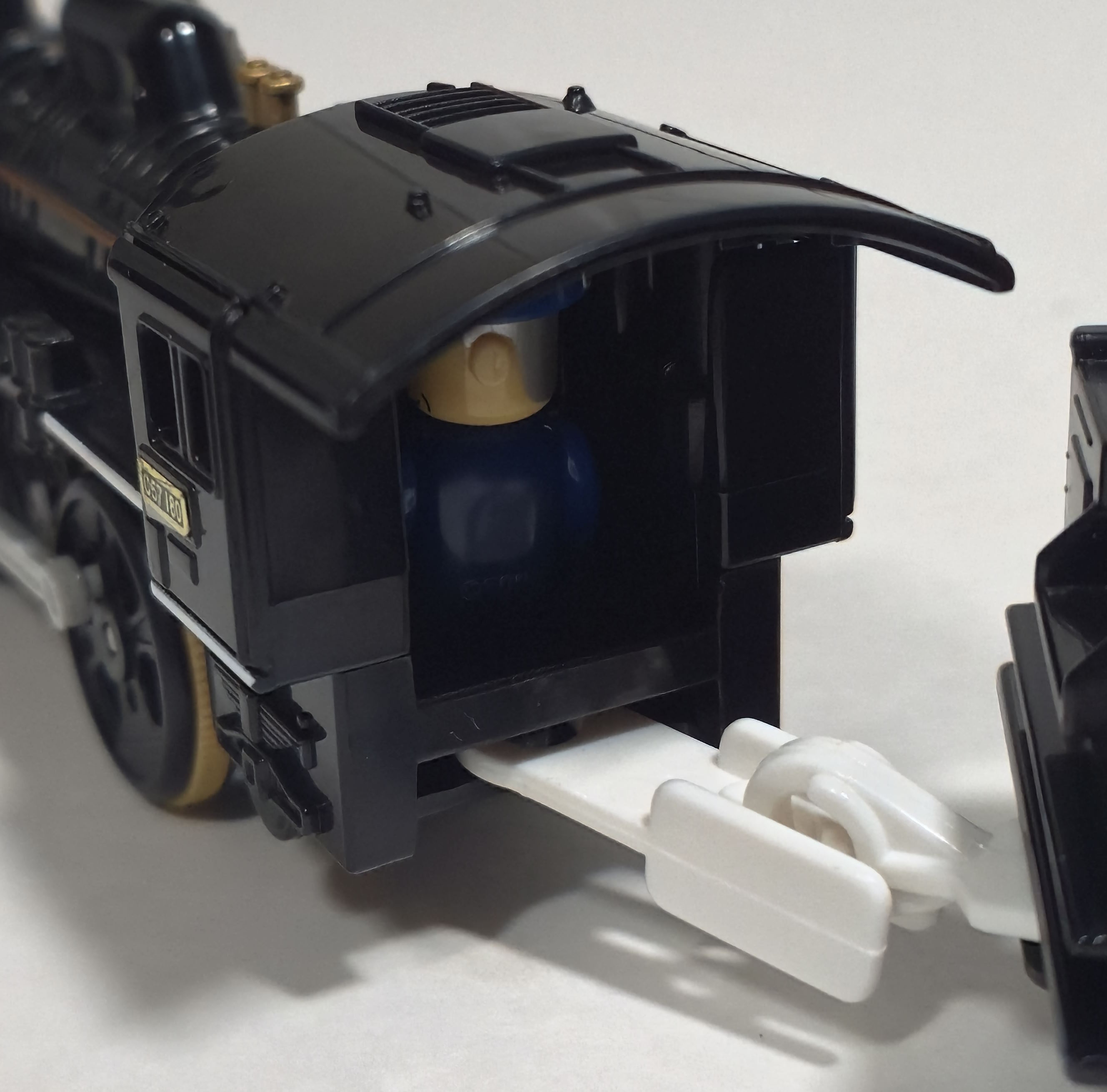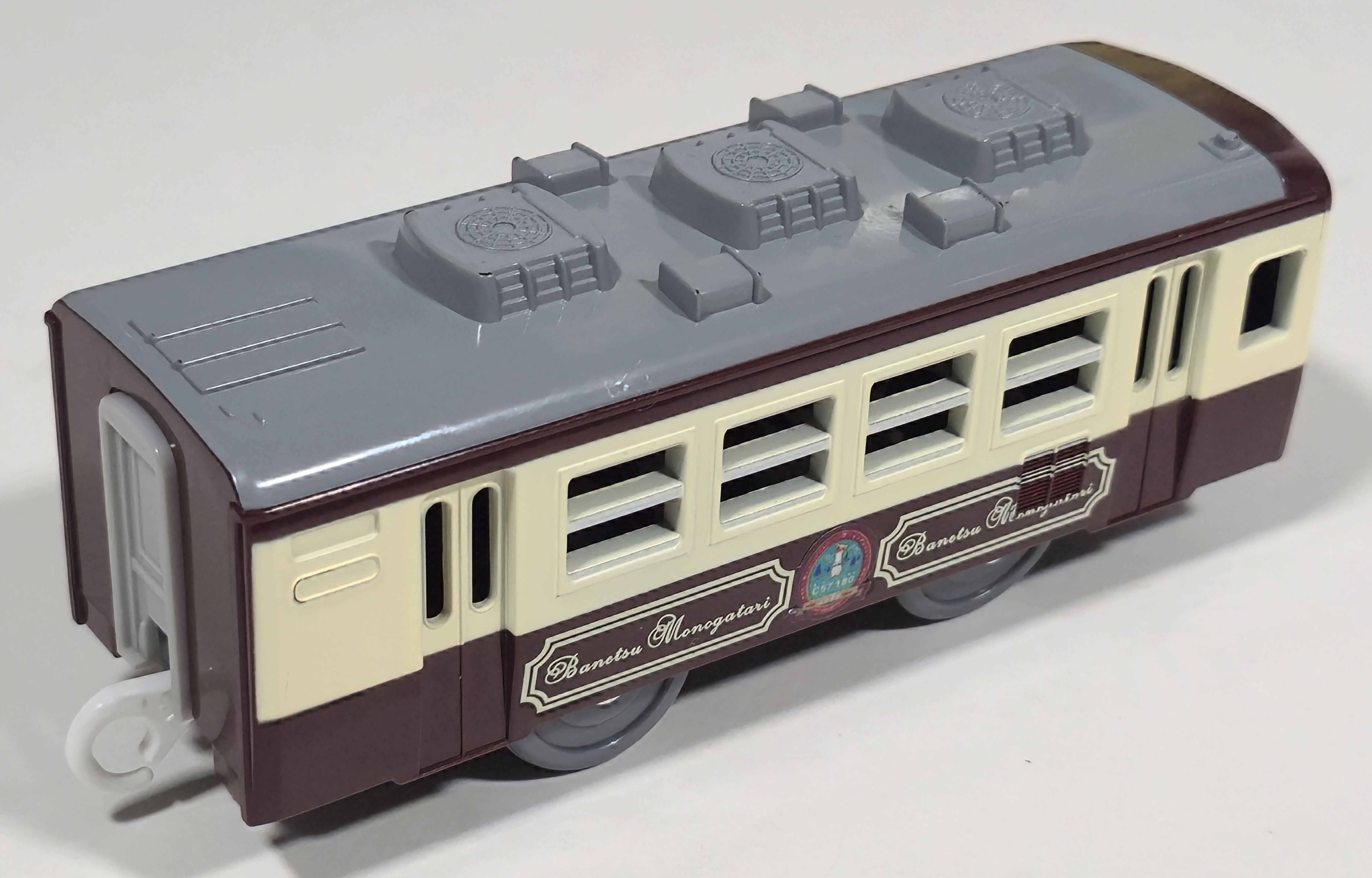 The locomotive has the Banetsu Monogatari headmark and an open cab to seat a PlaKid figure - although none is included in the set! In an era where PlaKids were appearing everywhere, even in sets that did not have PlaKid-specific trains, why leave out a PlaKid in a set that has a cab to seat one for the first time?