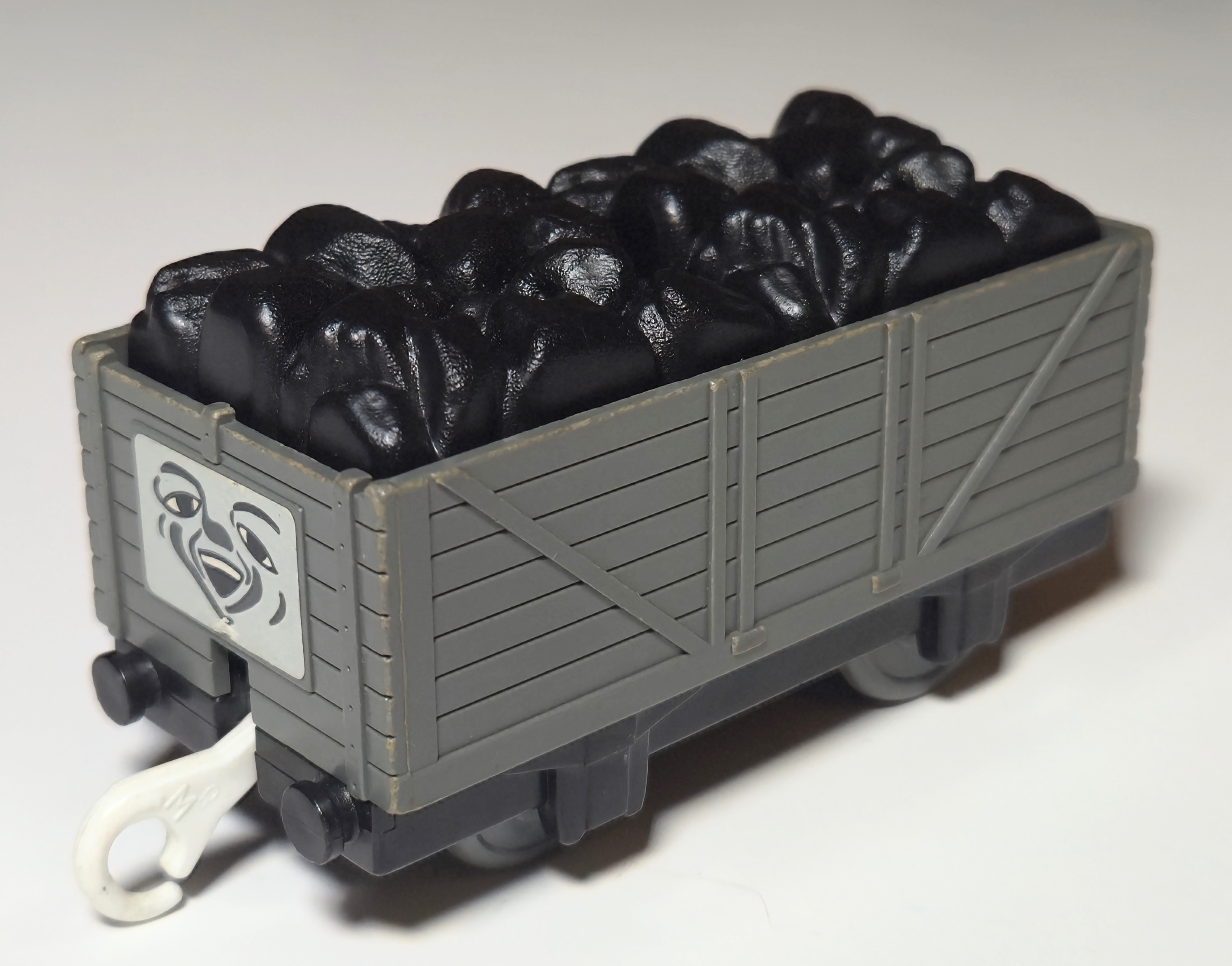 The troublesome trucks included are the sad and happy types. The clay tooling was reused later in different colors for coal and rock loads.