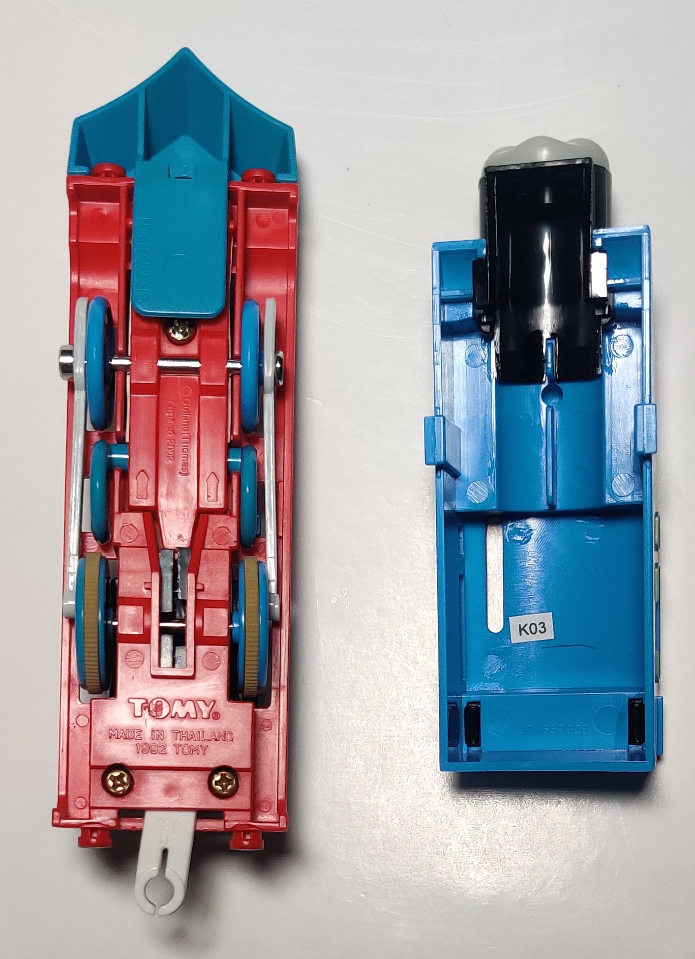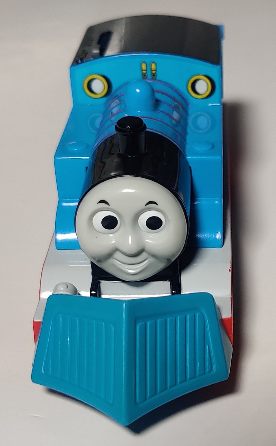 This example was produced in November 2003. Here is the looking-left face variation with a standard Thomas. This was the first of the eyes-looking-to-one-side Thomas variants that appeared in the 2000s and 2010s.