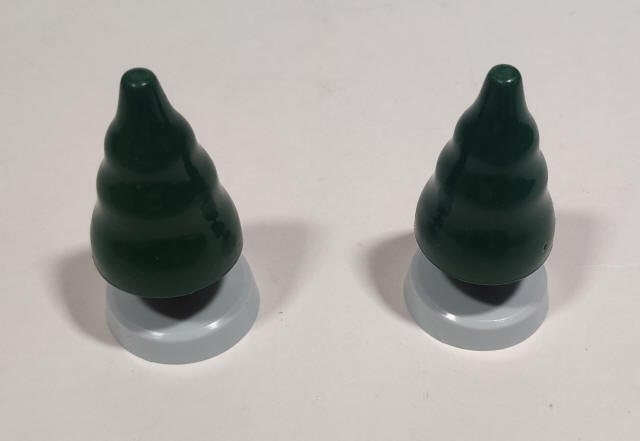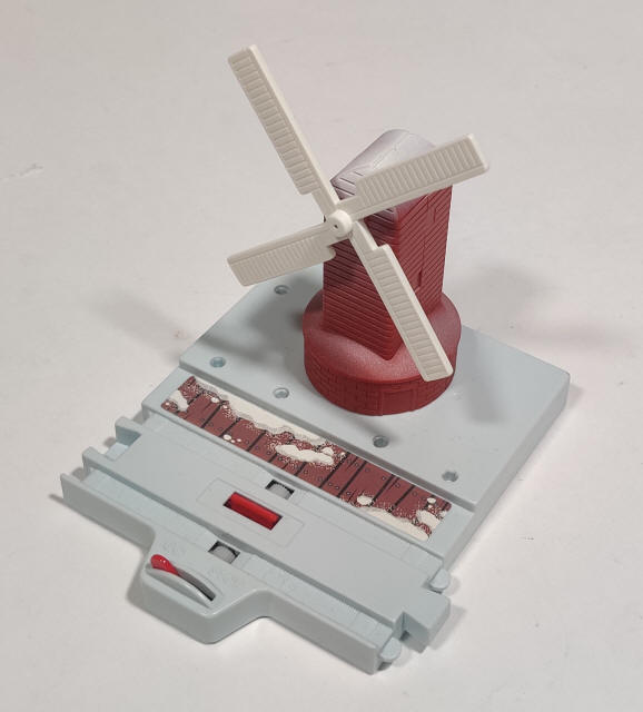 The windmill is a white-based snowy variant of the windmill from the J-26 Thomas the Tank Engine Funny Scene Set. Trees have brown trunks and off-white bases.