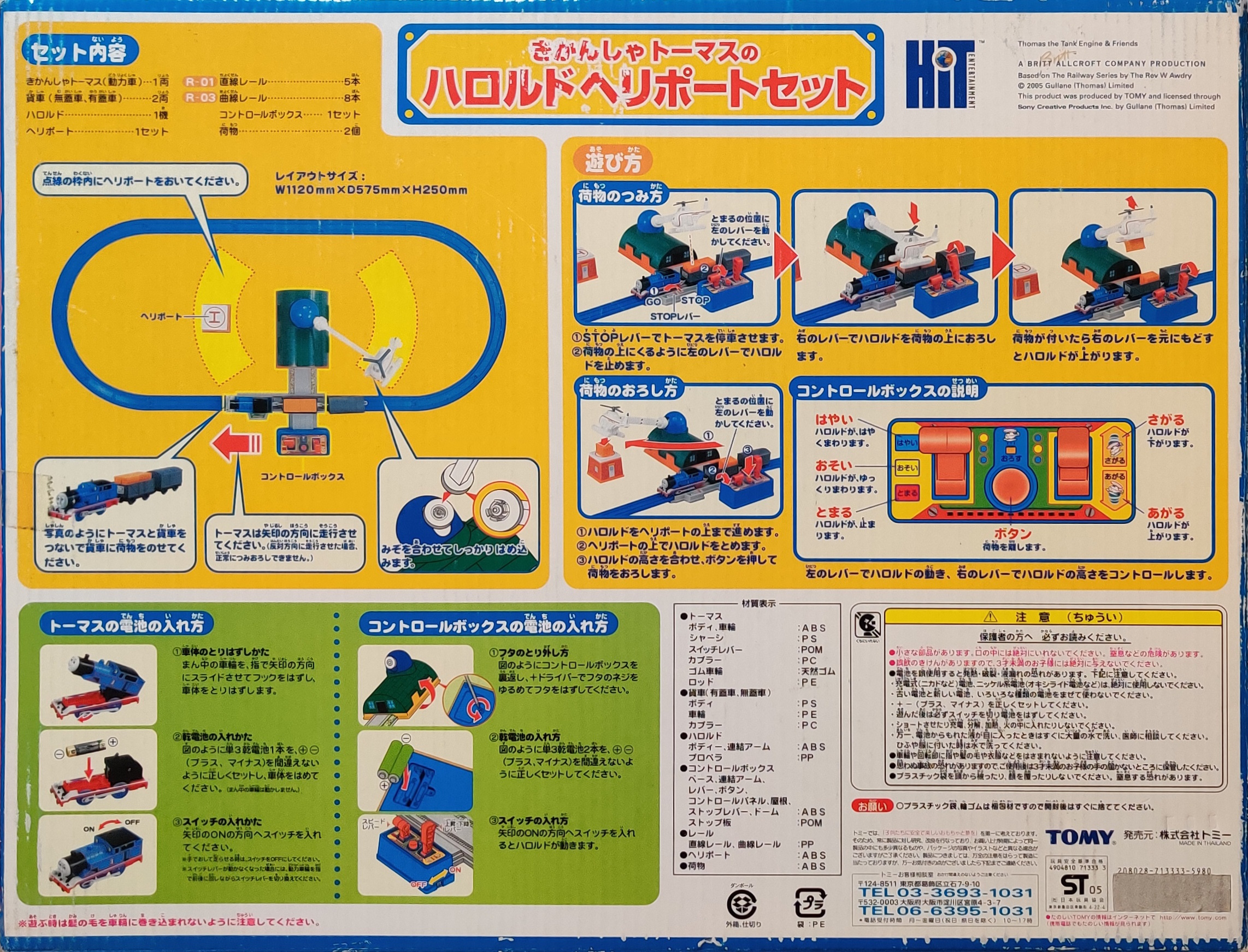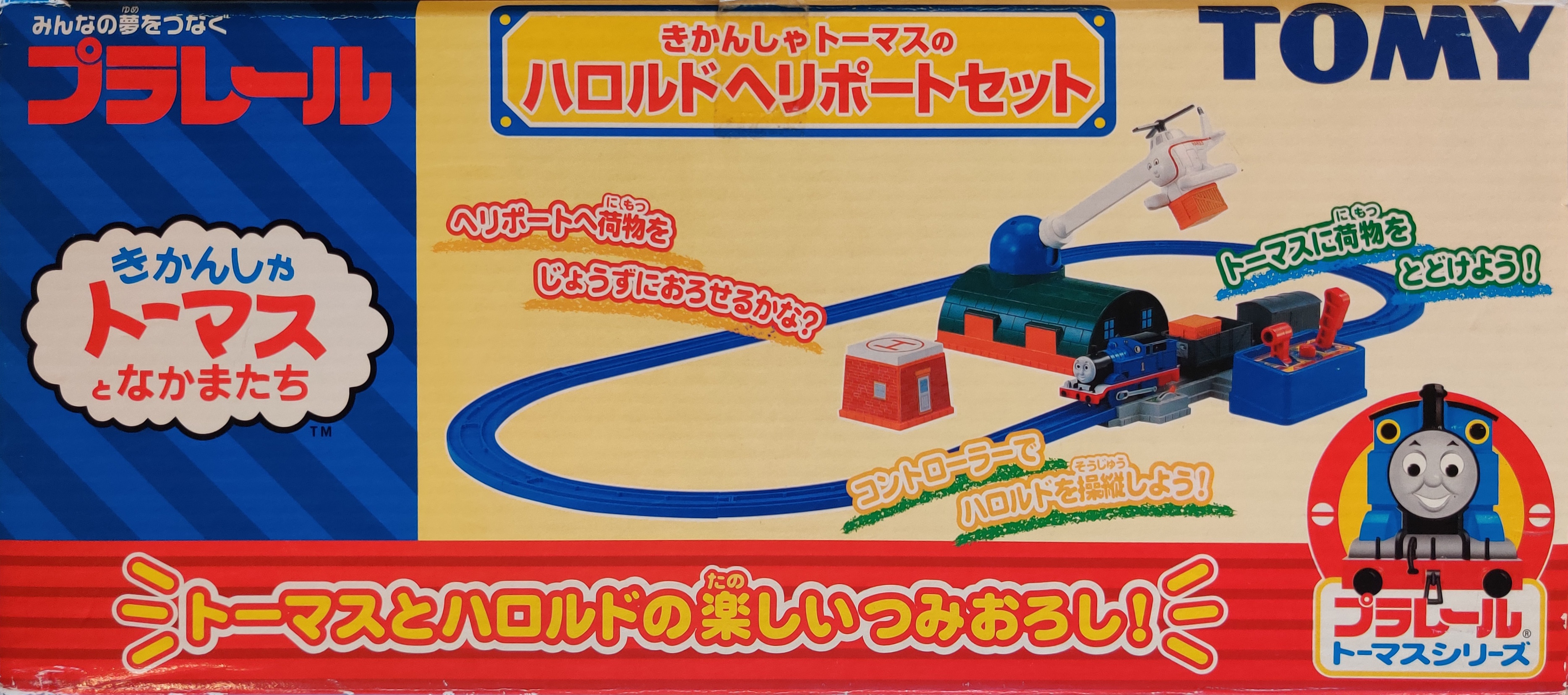 The Thomas the Tank Engine Harold's Heliport Set (きかんしゃトーマスとバーティーのきょうそうセット) is a Thomas-series Plarail set released on June 30, 2005. The set is a basic oval with Thomas, trucks, and the motorized "flying" Harold Cargo Delivery accessory.