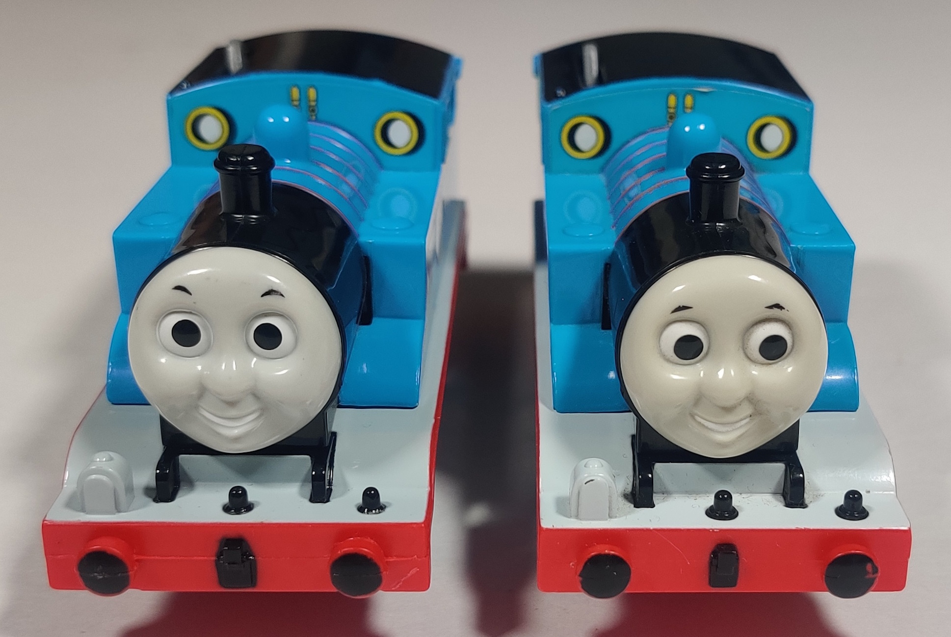 The engine and bus in my set were both produced in early 2008. Here is the face of the Thomas in this set compared with a regular 2003+ one.