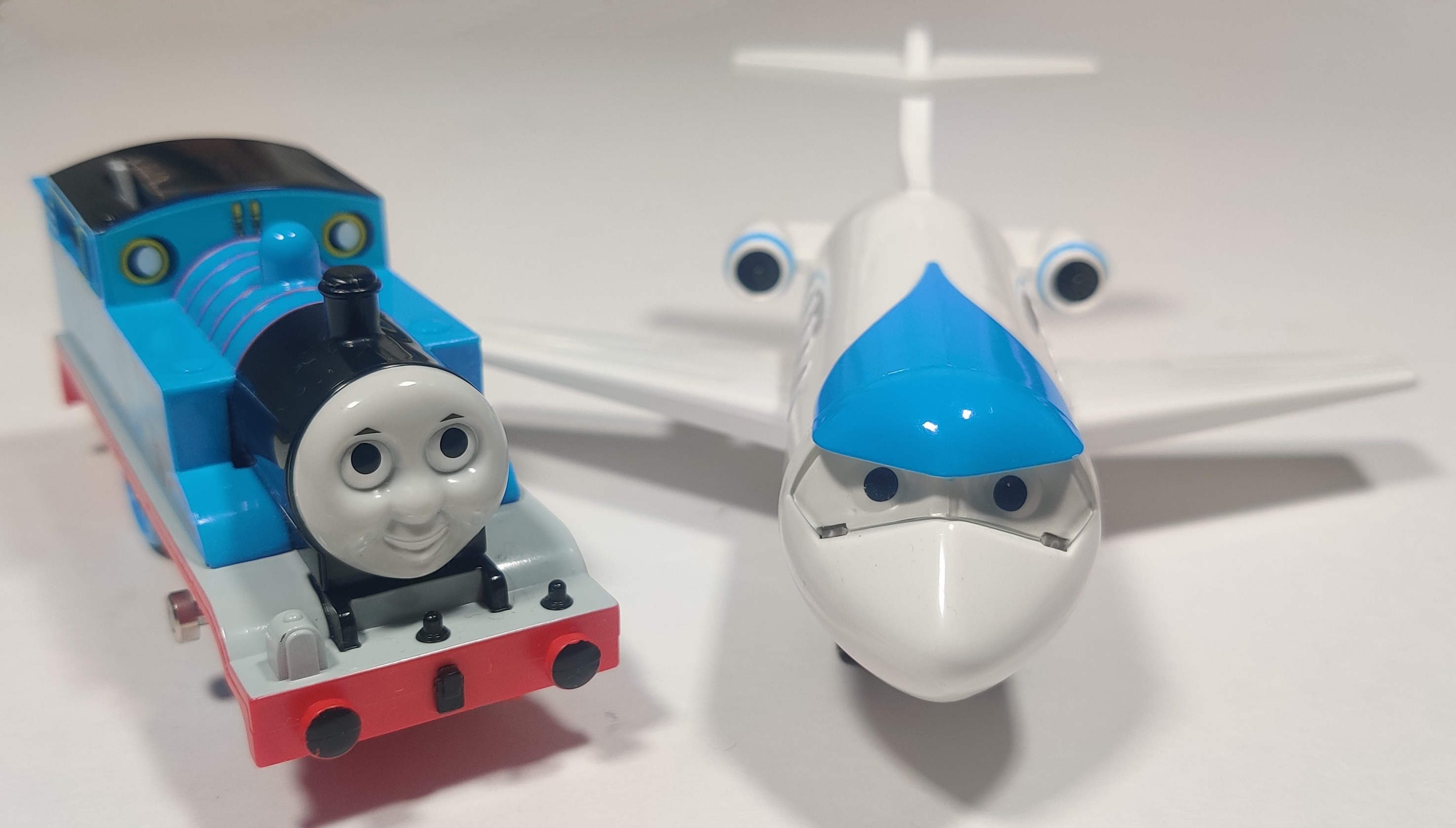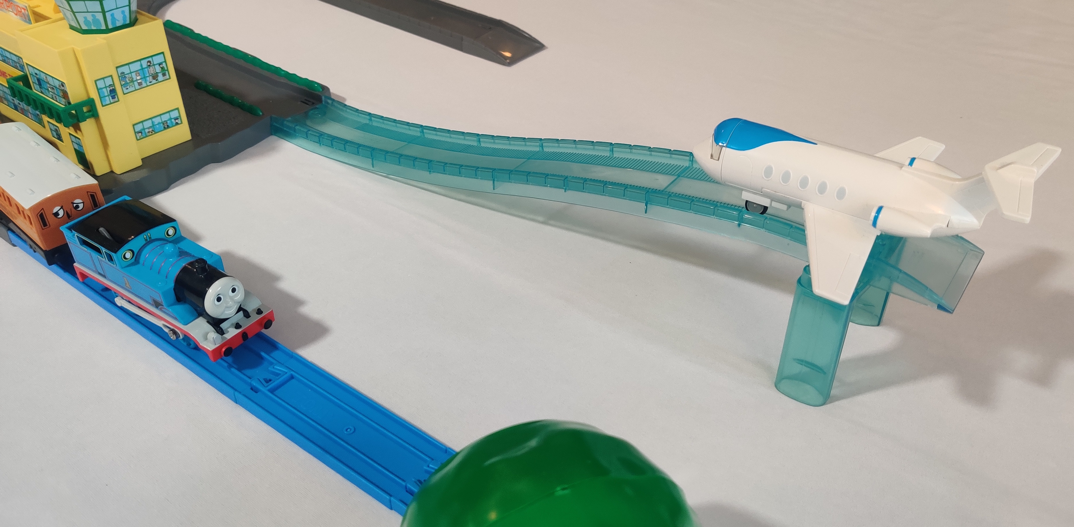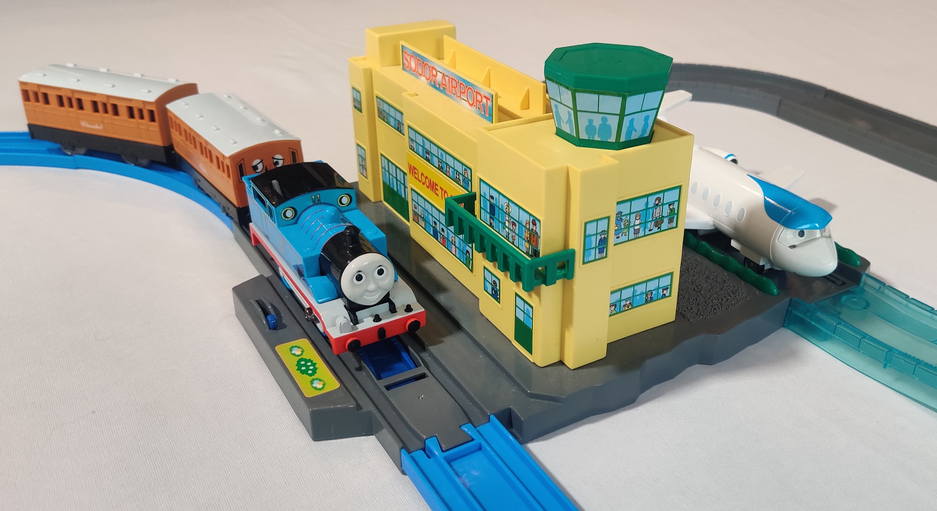 The airport is a nice destination, even in this watered-down form, and Thomas looking up at Jeremy is a cute touch to the otherwise standard train.