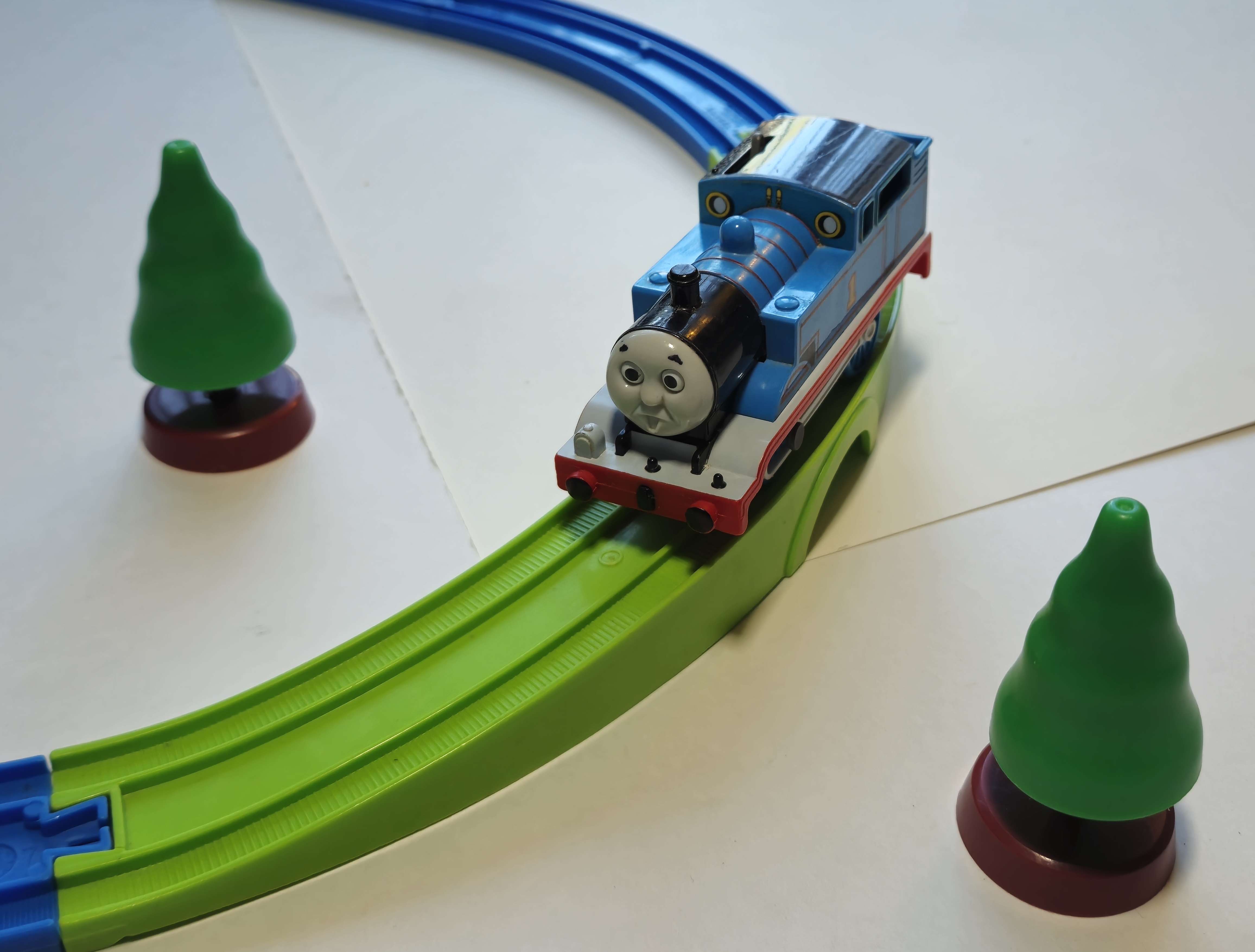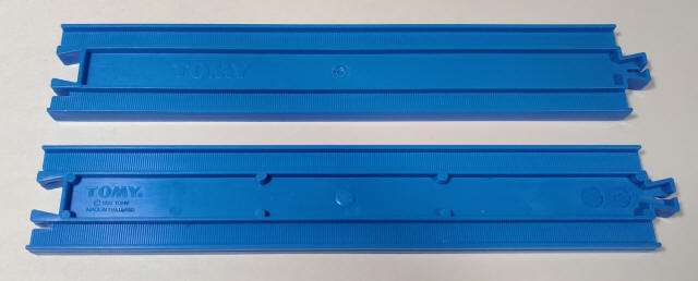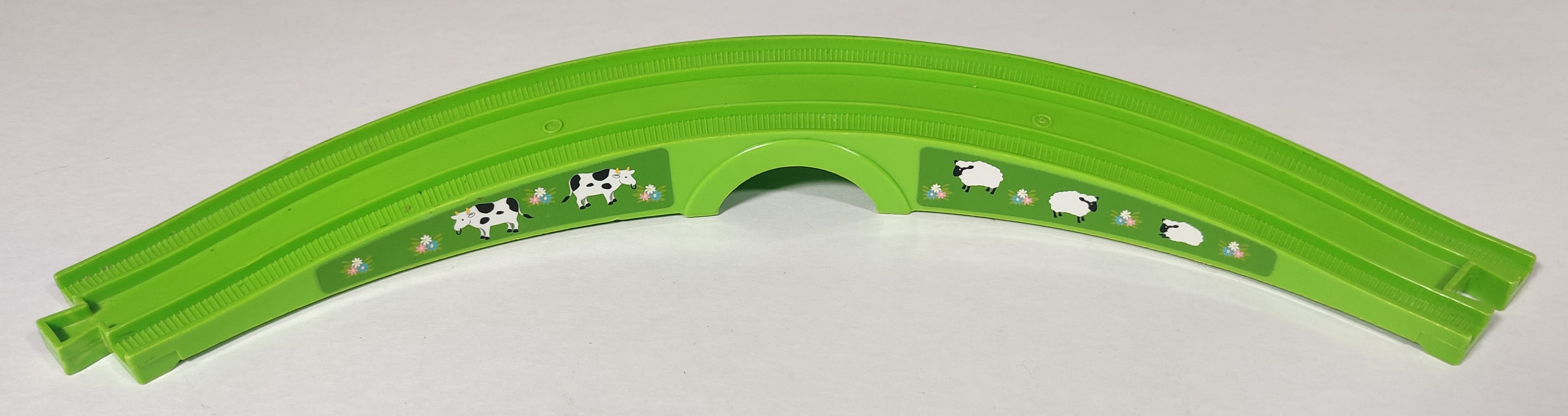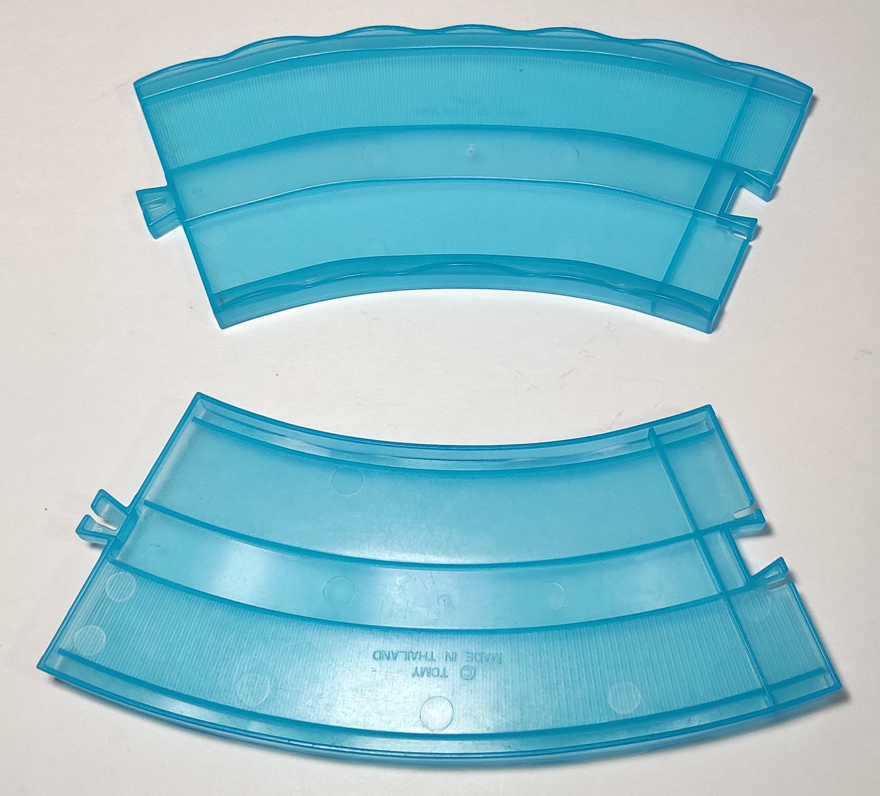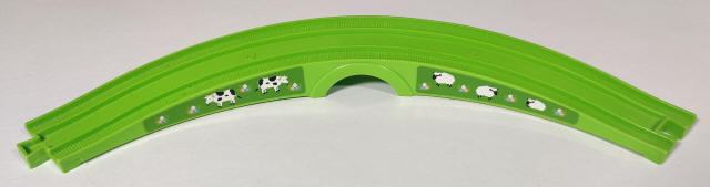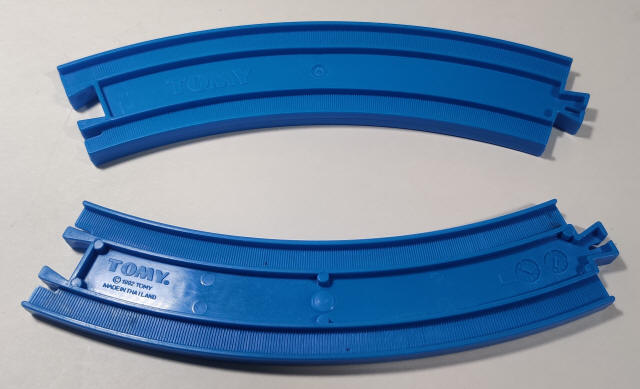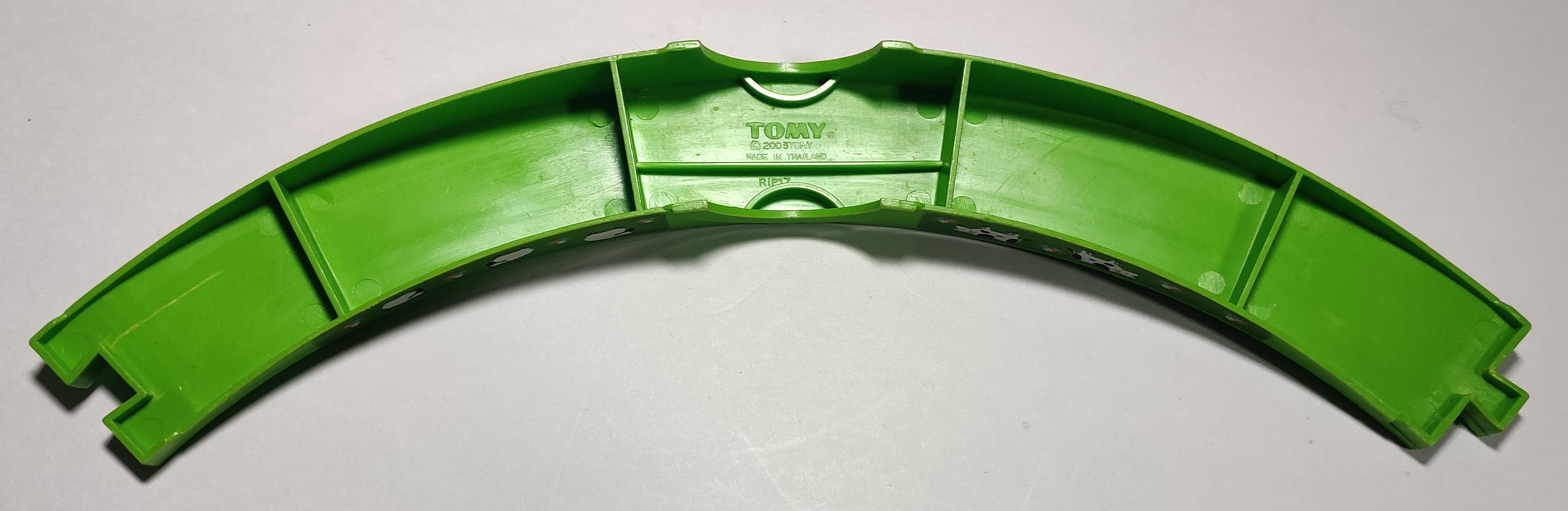 Another neat inclusion is an updated version of the old TomyTrain banked curve in green with stickers.