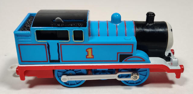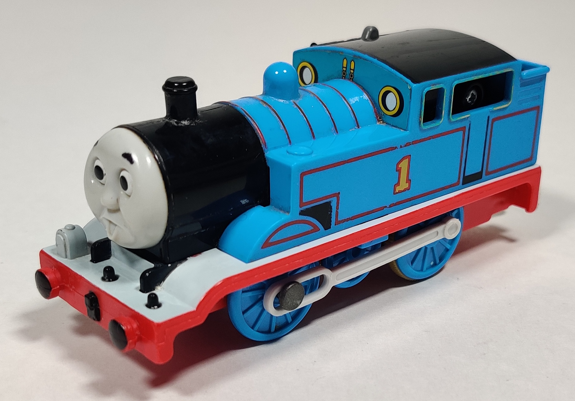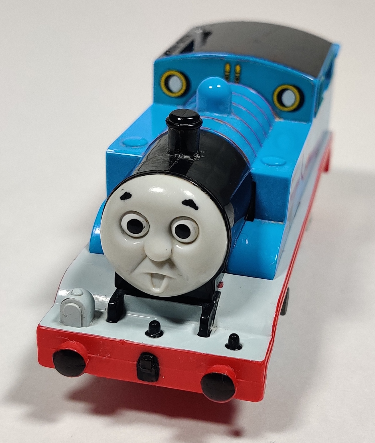 This set comes with a surprised-face Thomas looking roughly straight ahead, differentiating it from the earlier Jet Engine Thomas and Doki Doki Mountain Set Thomas. These Thomases were produced in June 2010.