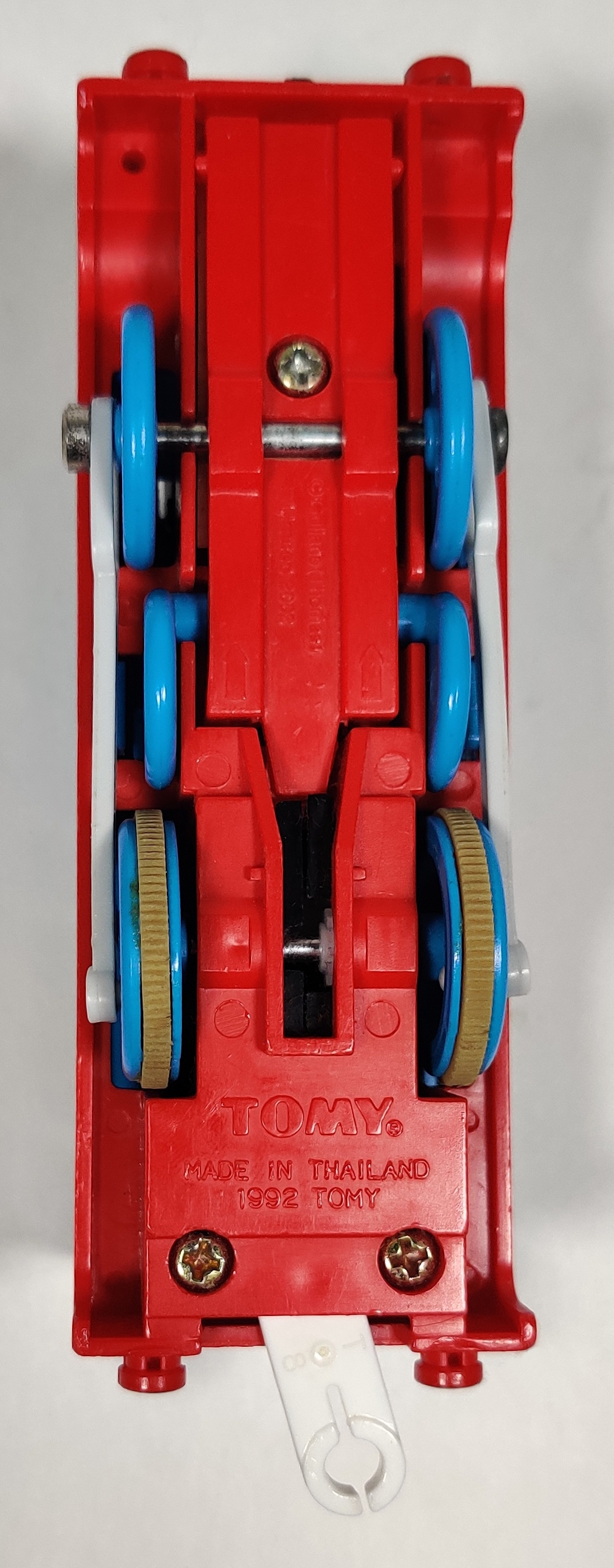 A sticker on the front of my box references the inclusion of a bonus passenger car. I have seen this sticker on a few other boxes for this set online, but mine nor the others I have seen still have it present to even know what car it was. I think this was probably an inclusion done by a store or retailer as opposed to Tomy themselves, or it might even refer to a separate giveaway item awarded at the point of sale...