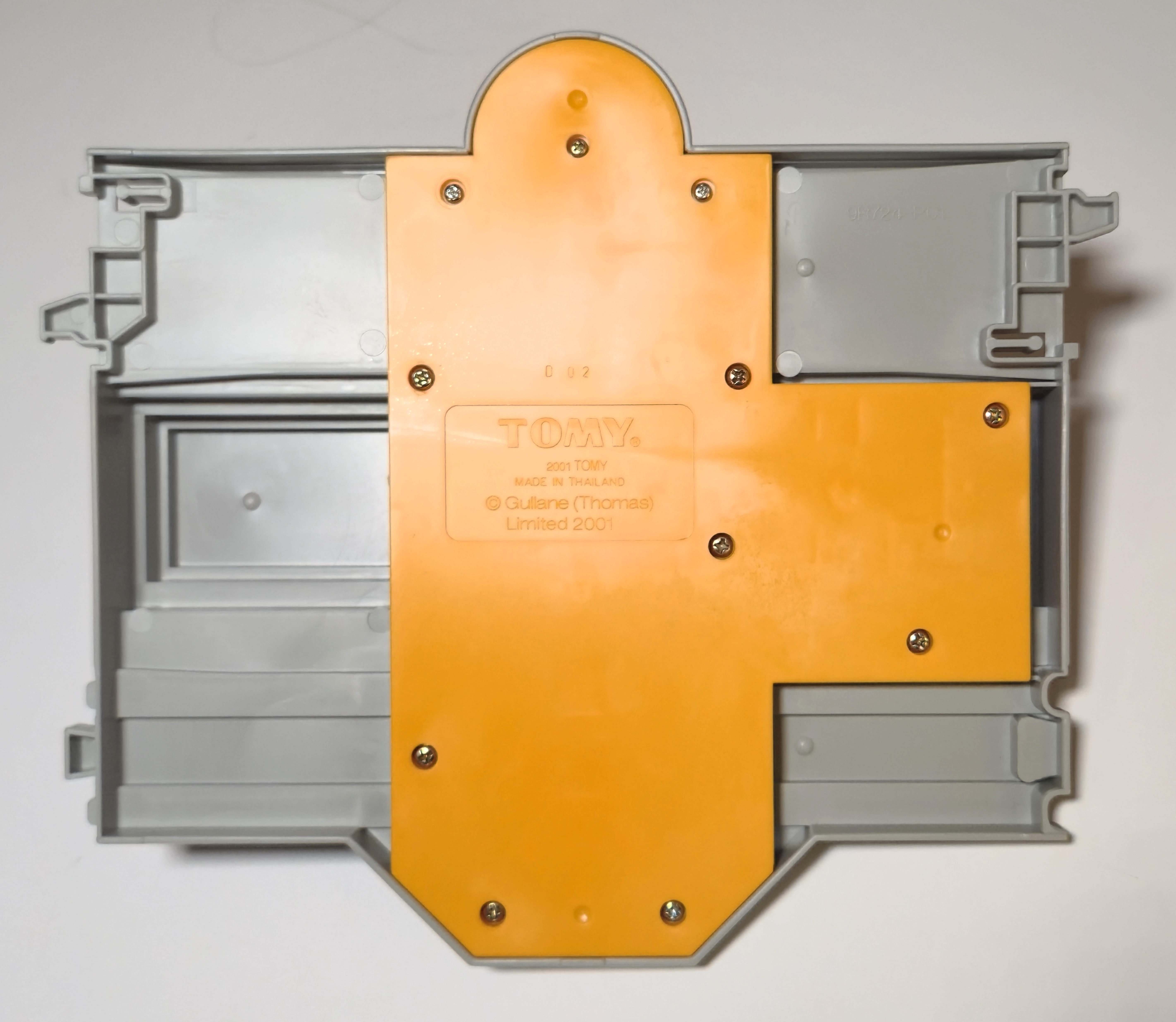 The small characters included in these accessories are the same type as later included in the Thomas and Busy Freight Cars Set and a few export sets, although by that time the tooling had gained licensing information on the bottom. This is the easiest way to tell one of these very early vehicle characters apart from their later set releases. The claw in the center of the car clips Caroline into position and remains on later releases.