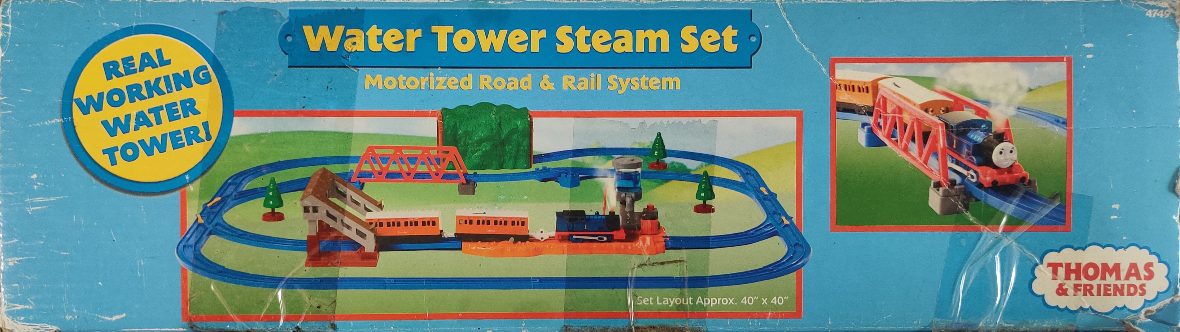 The 4749 Water Tower Steam Set is a 2006 American Thomas Motorized Road & Rail set that features the Steam Along Thomas, operating water tower, pedestrian crossing, and large layout with multiple switches.