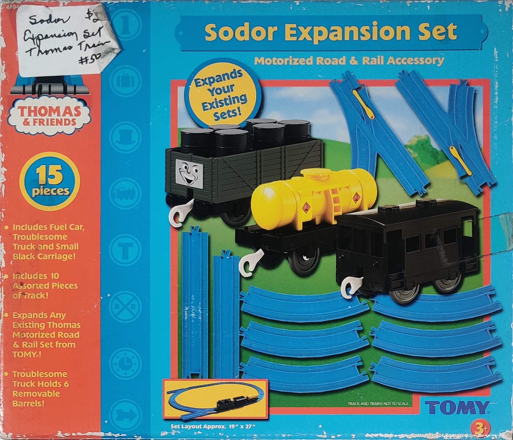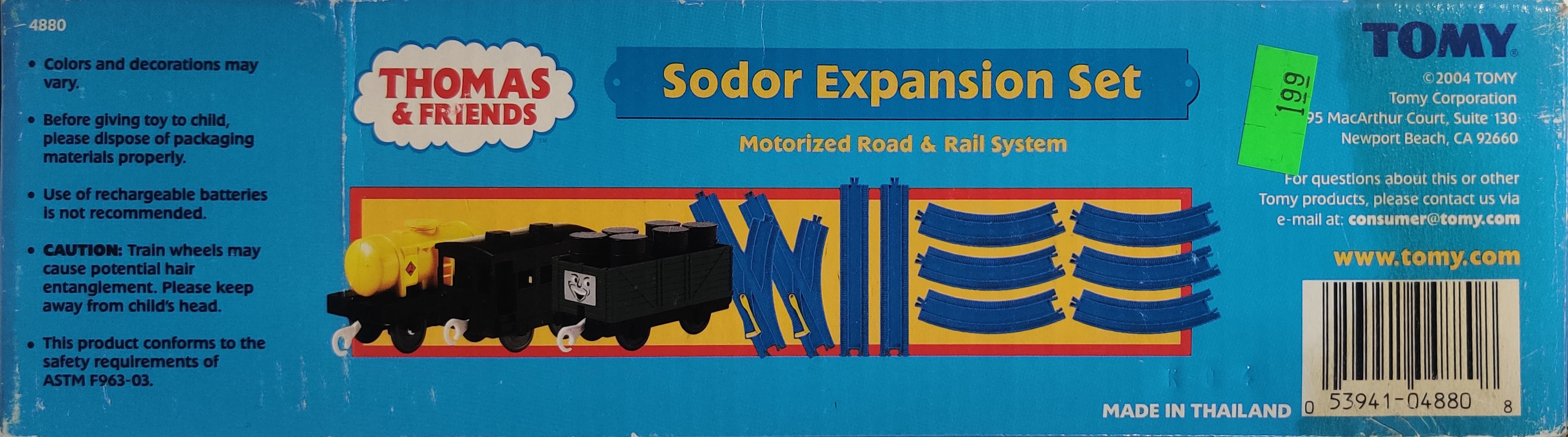 In 2006 a new accessory set with different track and rolling stock was released as 4892 Sodor Expansion Set. In later 2006 this pack was rereleased with the new catalogue number 4894 with a slightly updated box with different catalogue number and Tomy Corporation address. This example dates to October 2006, and is unopened.