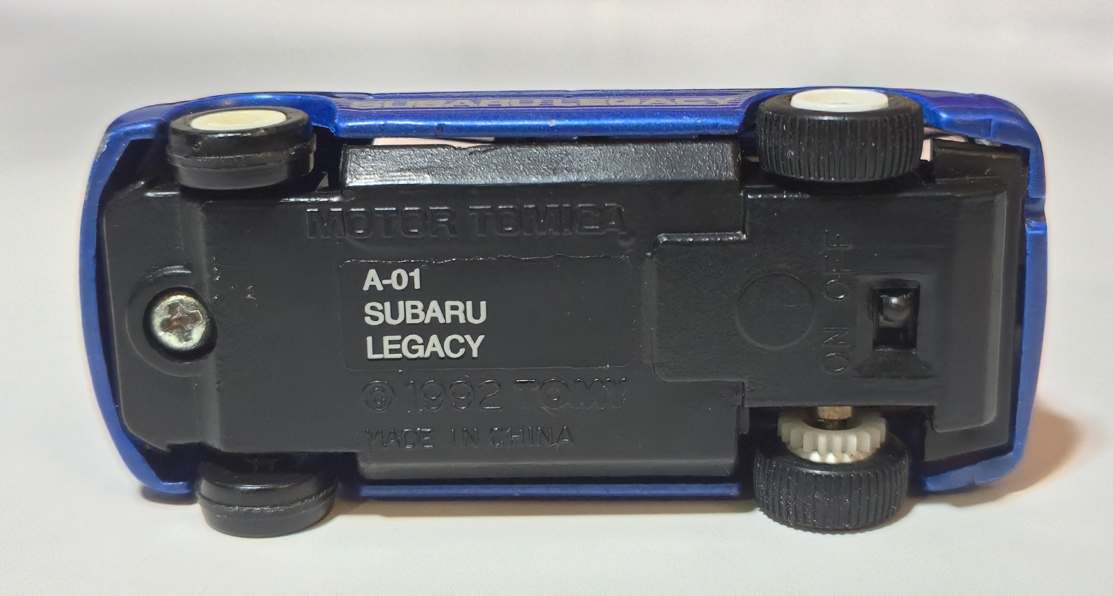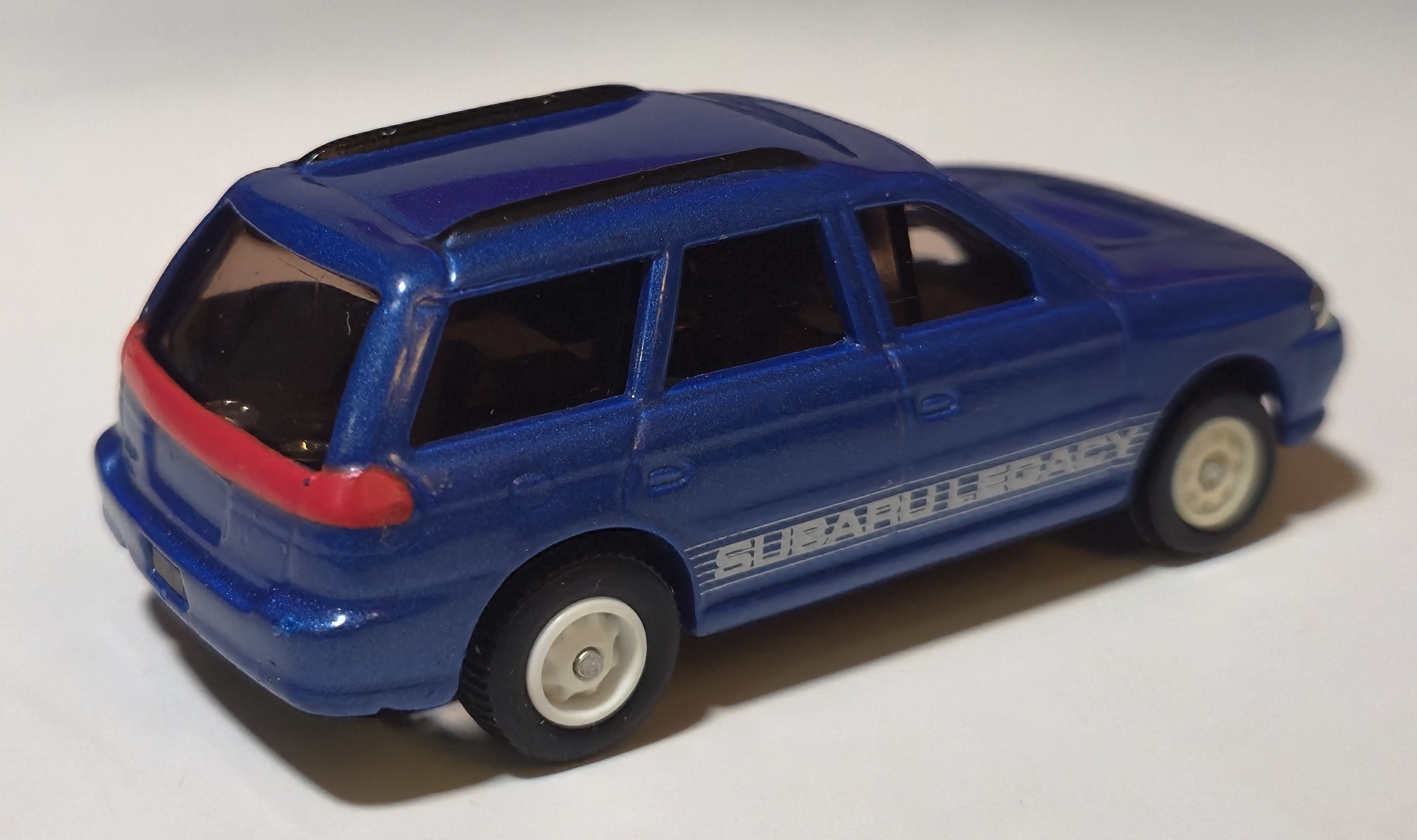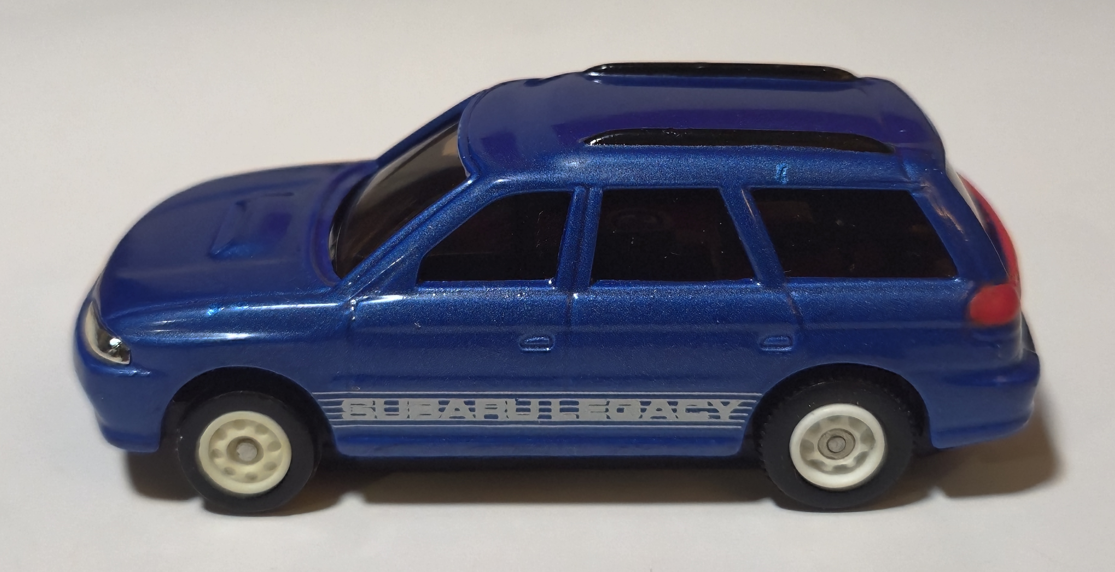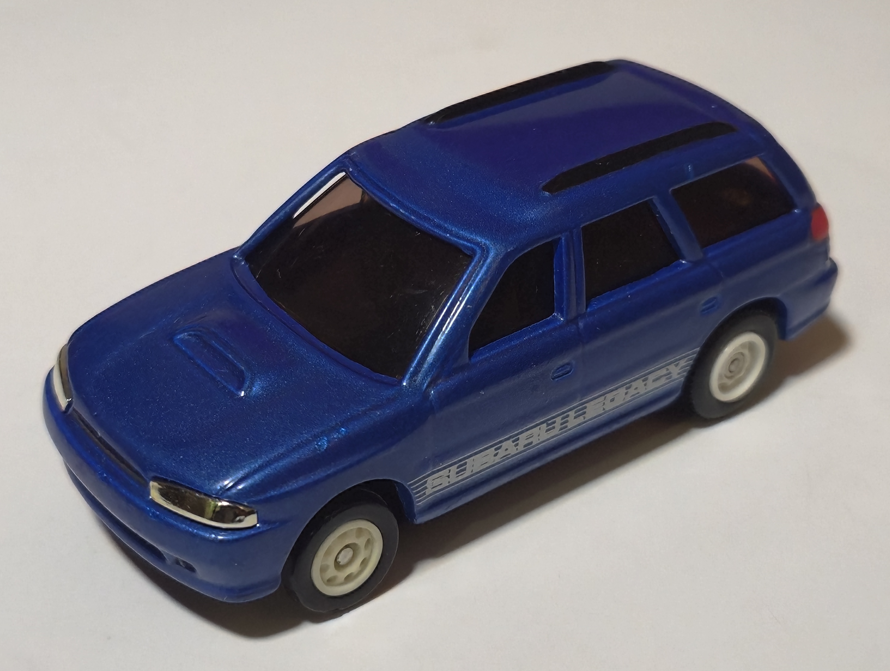 The first entry in the reformatted 1997 Motor Tomica range was a new blue version of the Subaru Legacy released in green as B-19 in the later B/O Tomica era. It was released as the Subaru Legacy Touring Wagon (スバルレガシィツーリングワゴン).