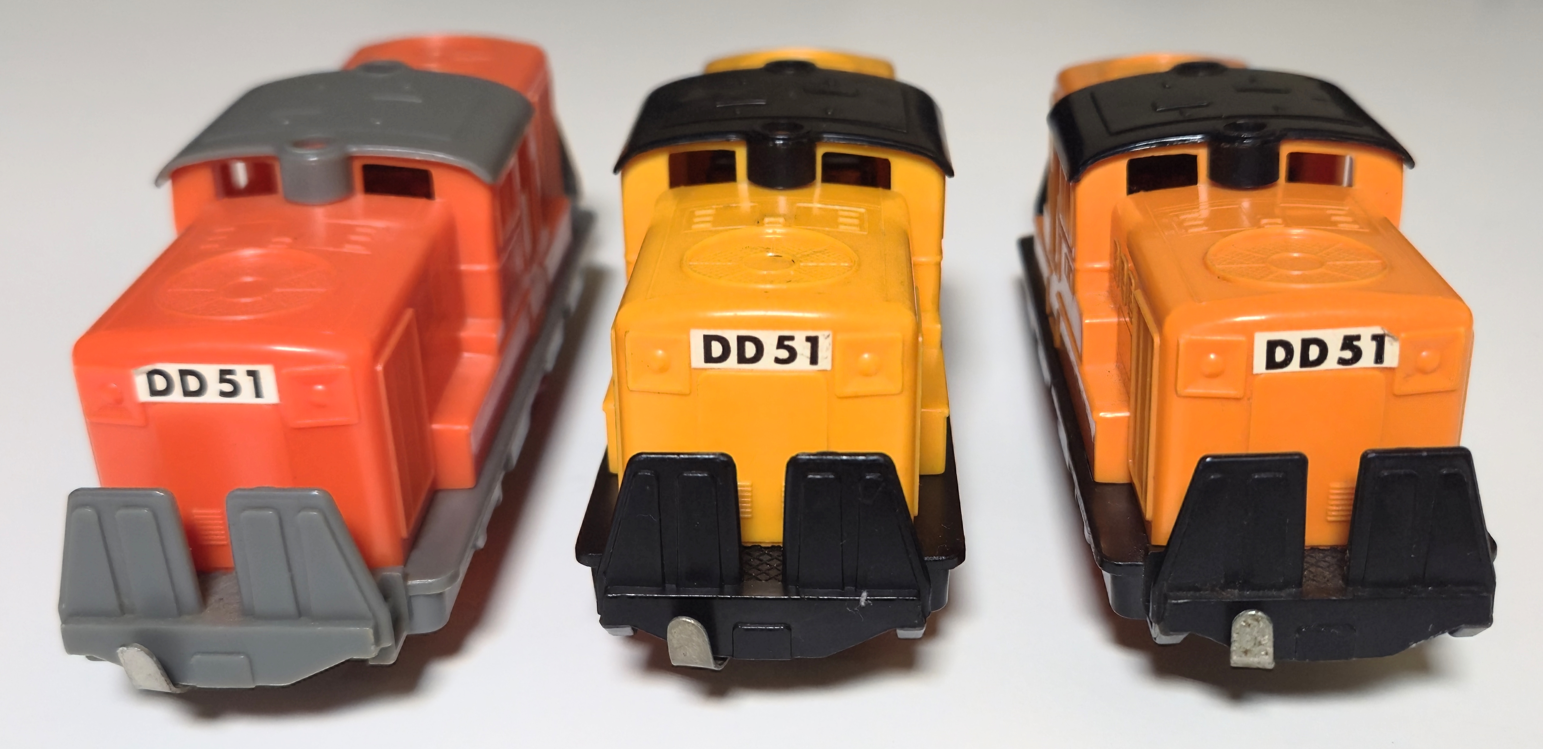 Here are the 1970s color variations of the DD51. I really like they grey version, and the lighter orange one also gives a nice color variation against the longer-lived orange type.